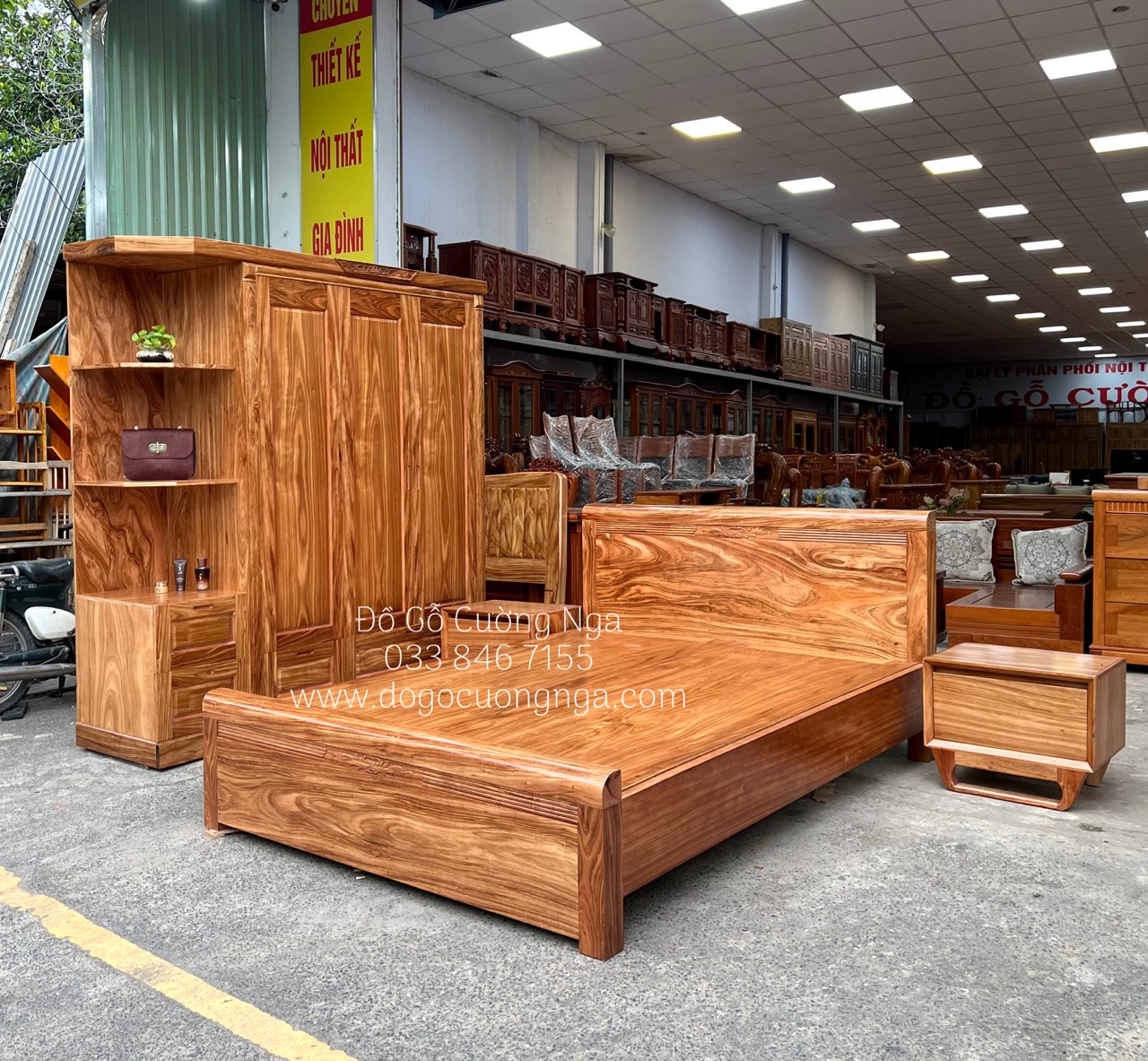 Chi tiết bộ phòng ngủ gỗ hương xám kết hợp