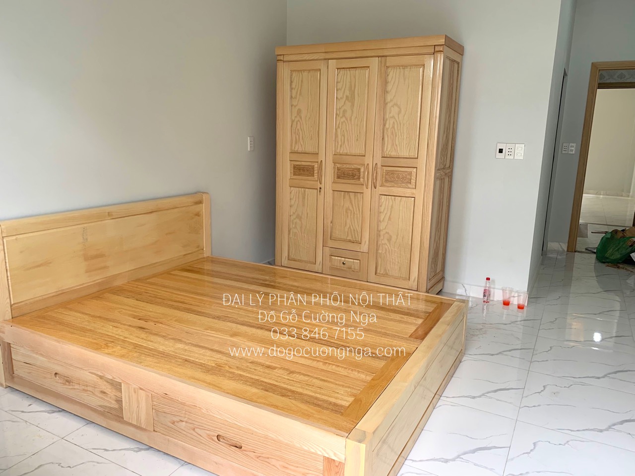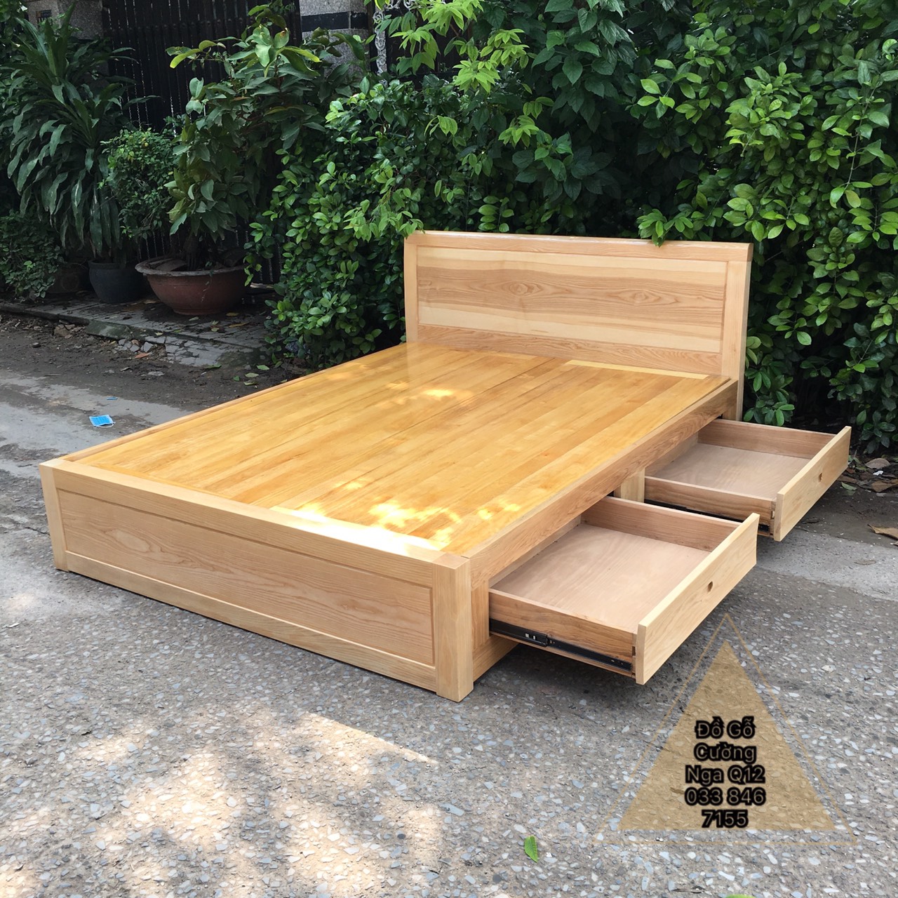 Giường ngủ gỗ sồi nga 2 ngăn kéo