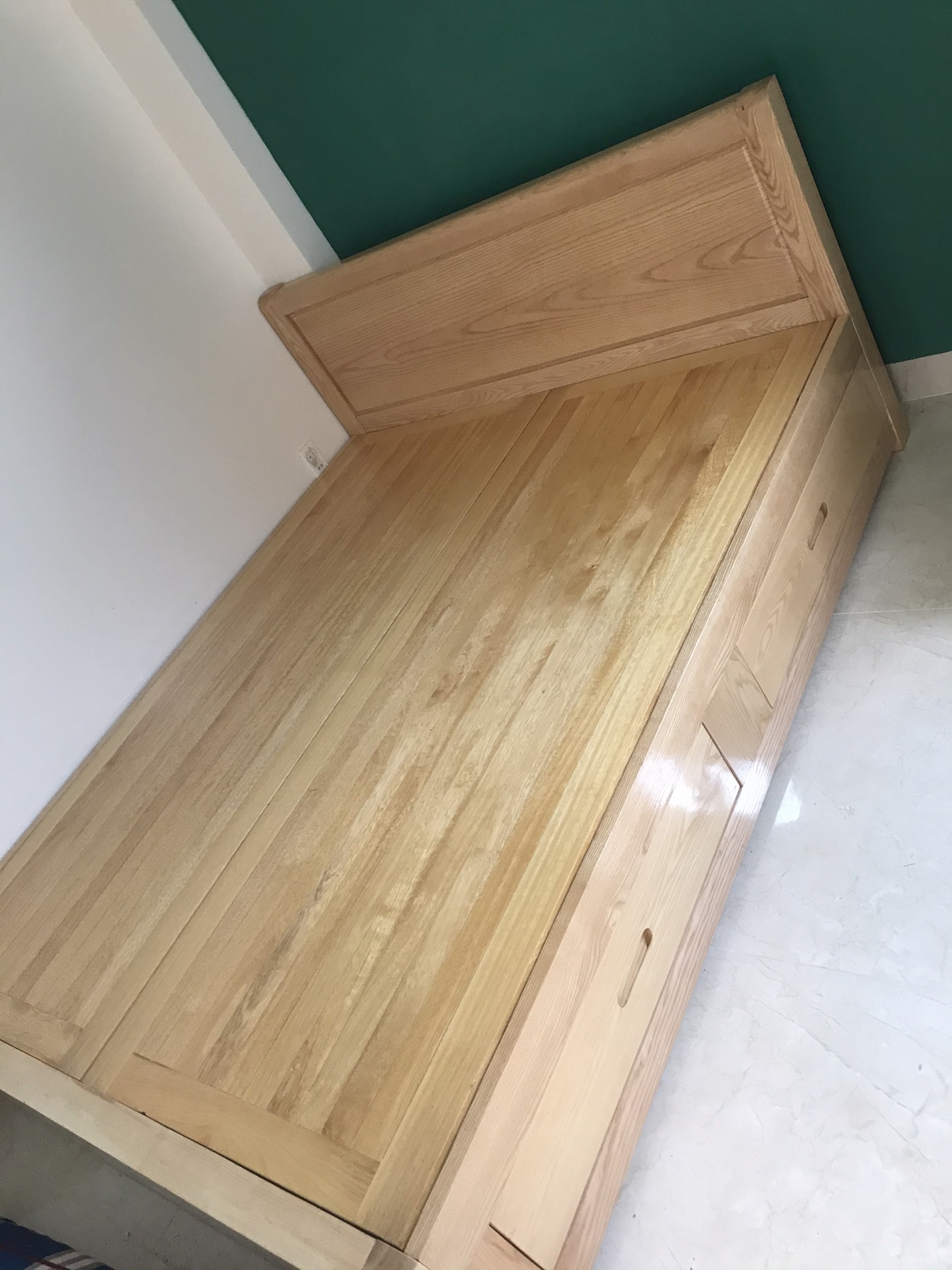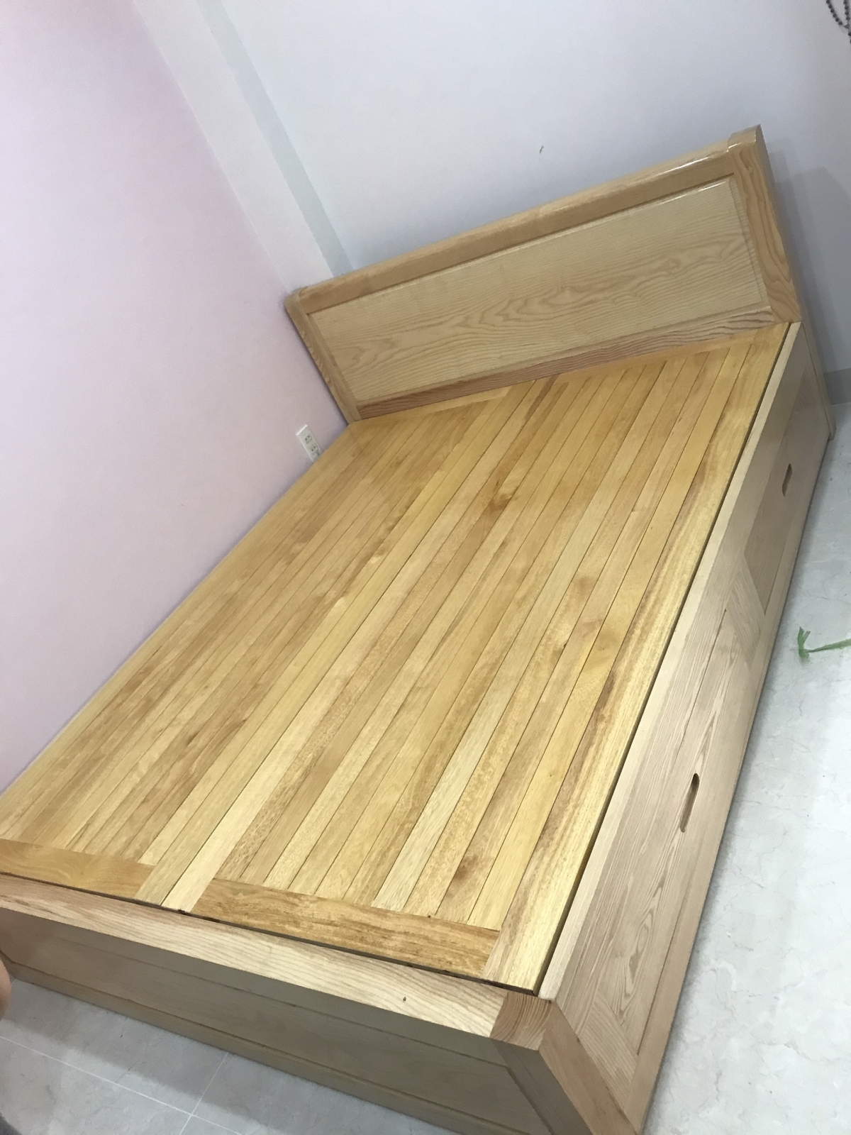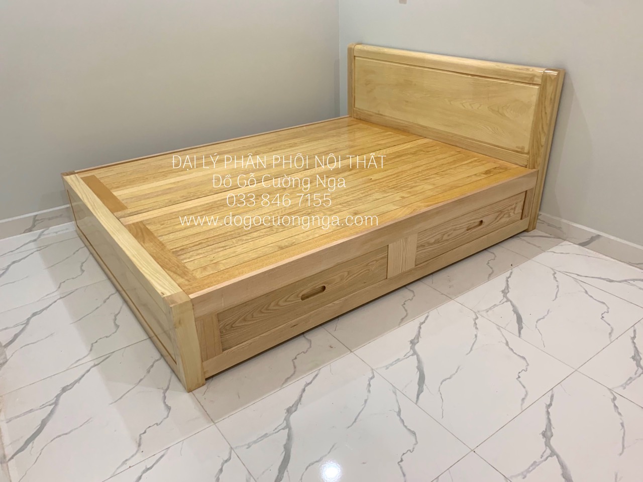 Giường gỗ sồi nga 2 ngăn kéo mẫu trơn - vạt phản