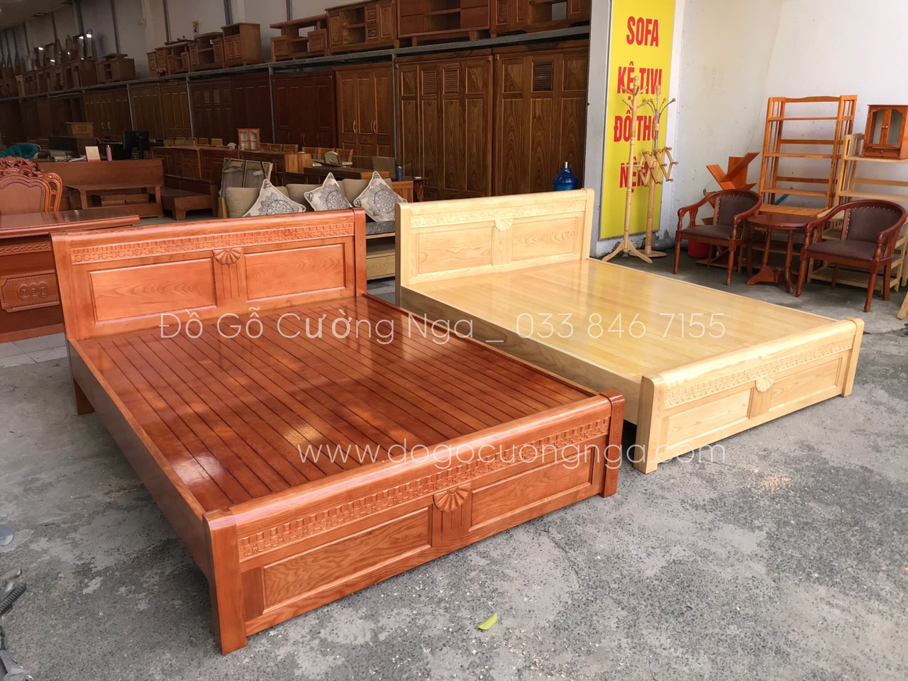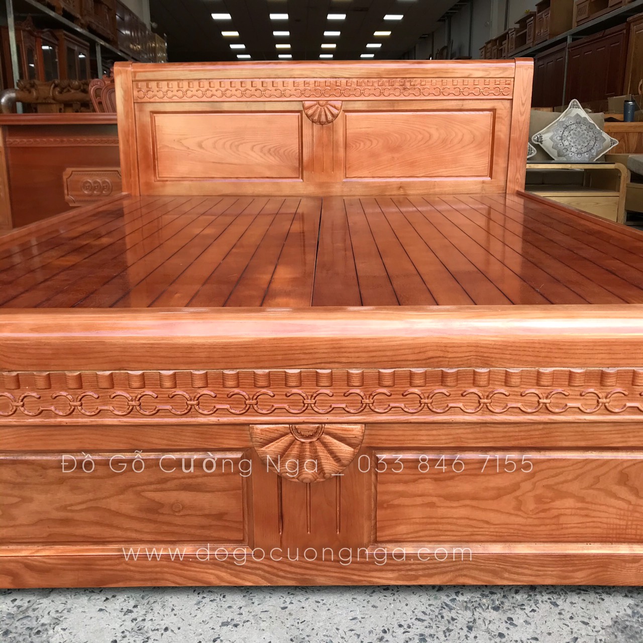 Giường Ngủ Gỗ Sồi Nga Trạm Khắc Nhẹ Nhàng Sang Trọng
