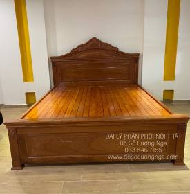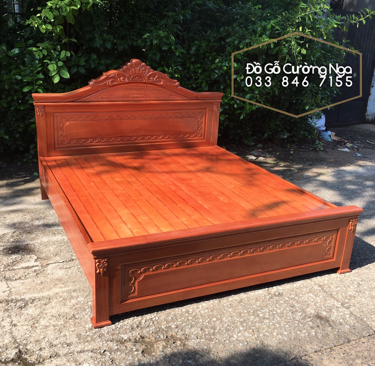 Chi tiết giường ngủ gỗ xoan đào giao khách