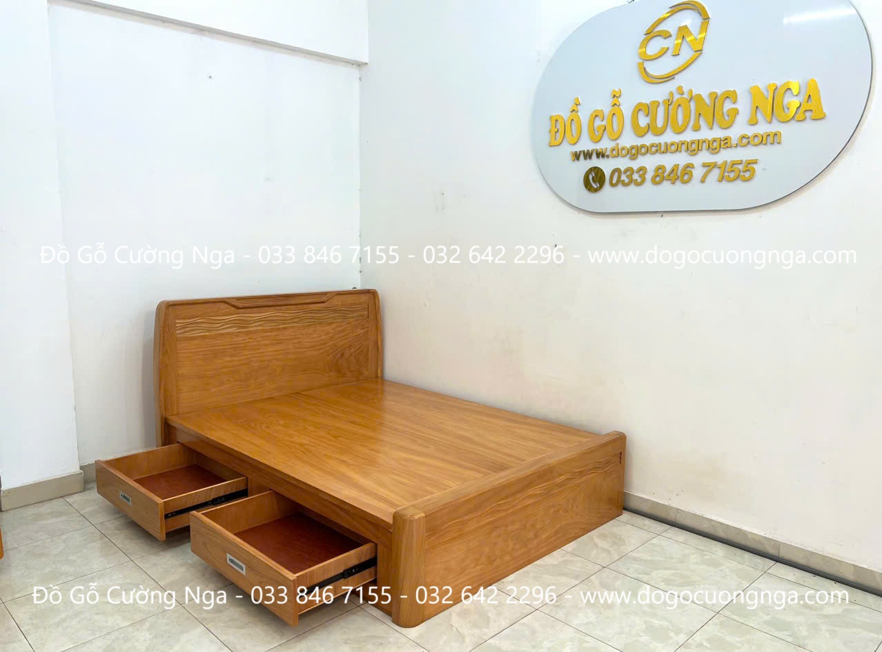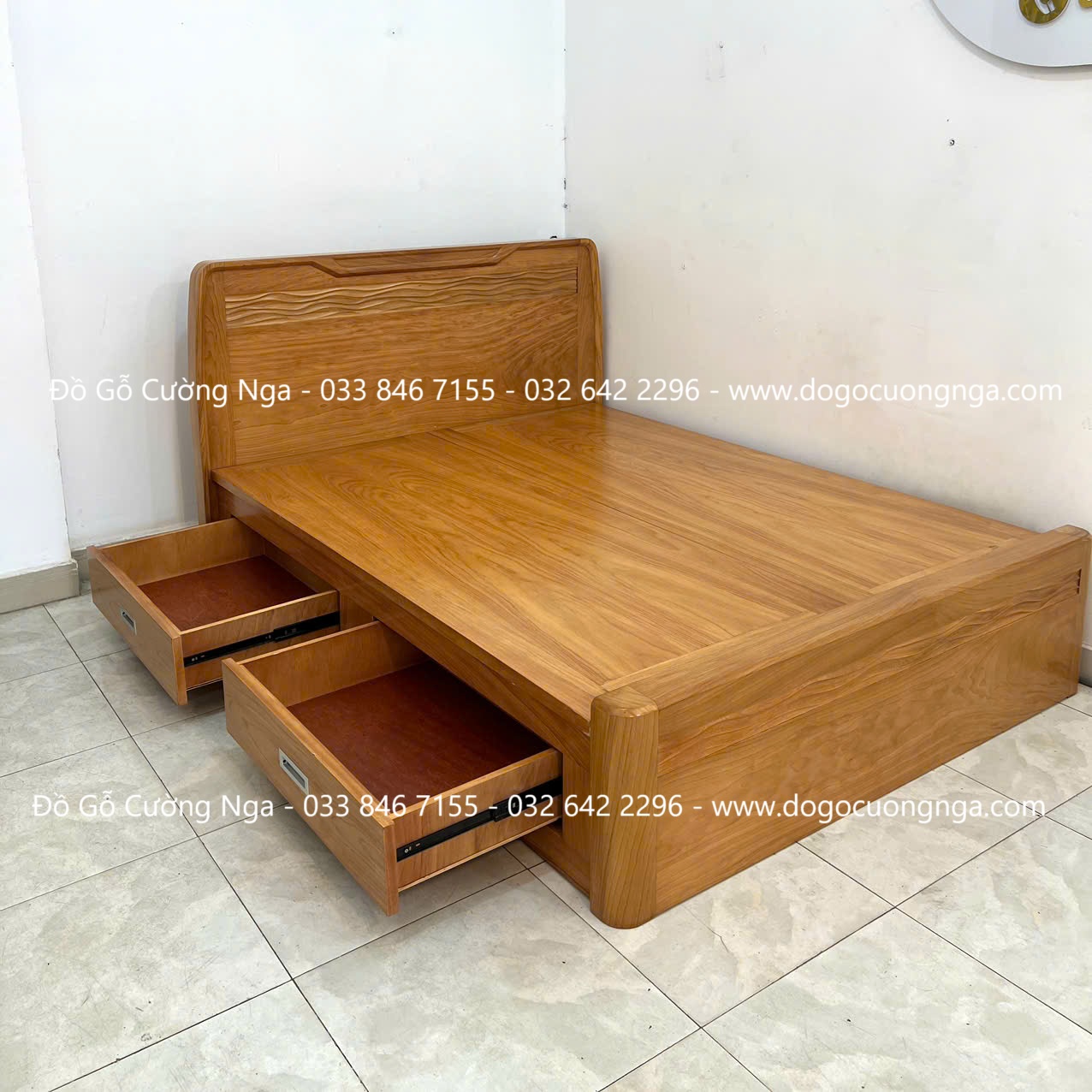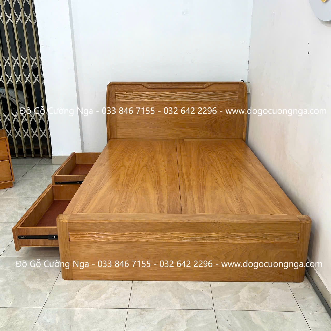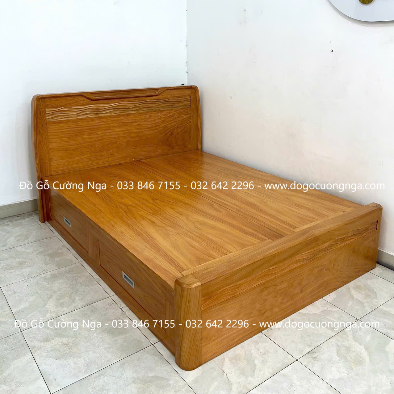 Giường Ngủ Gỗ Gõ Đỏ Hiện Đại Trạm Sóng 2 Ngăn Kéo