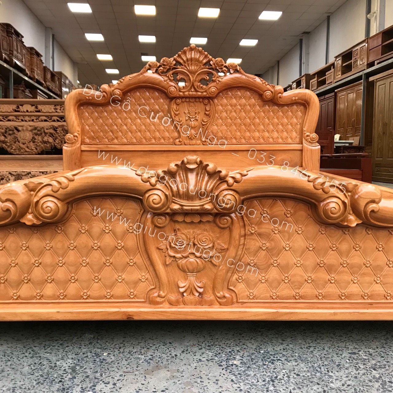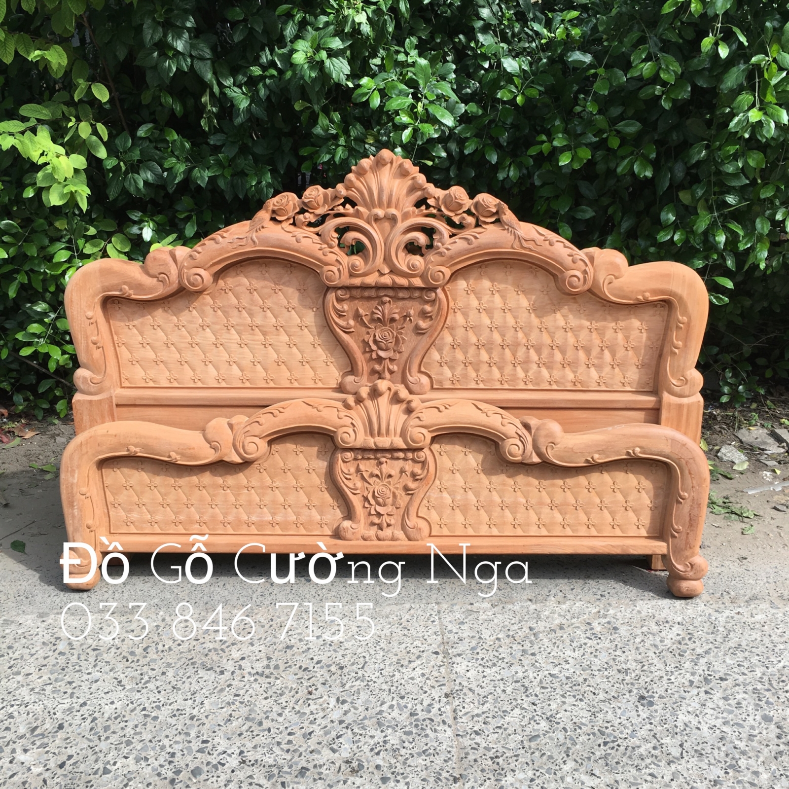 Giường ngủ gỗ gõ đỏ vạt lan - mẫu hoa hồng