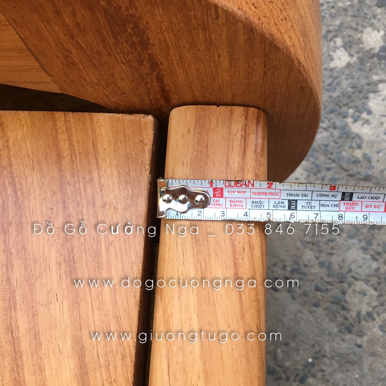 Giường Gấp Gỗ Xoan Đào 2 Ngăn Kéo Kèm Bàn (Có Kính) & Đôn Gỗ Sồi Bền Đẹp