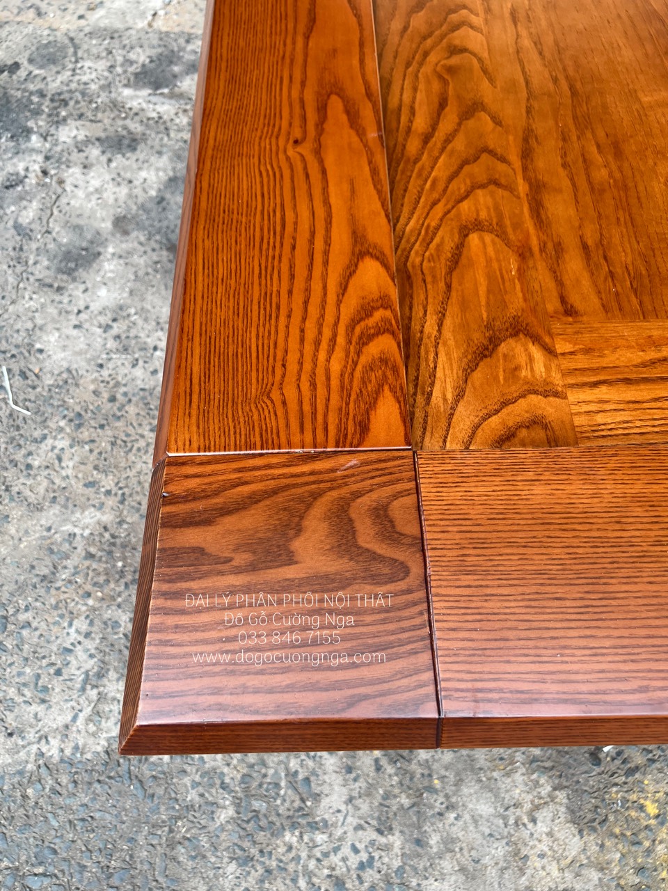 Giường Gấp Gỗ Xoan Đào 2 Ngăn Kéo Kèm Bàn (Có Kính) & Đôn Gỗ Sồi Bền Đẹp