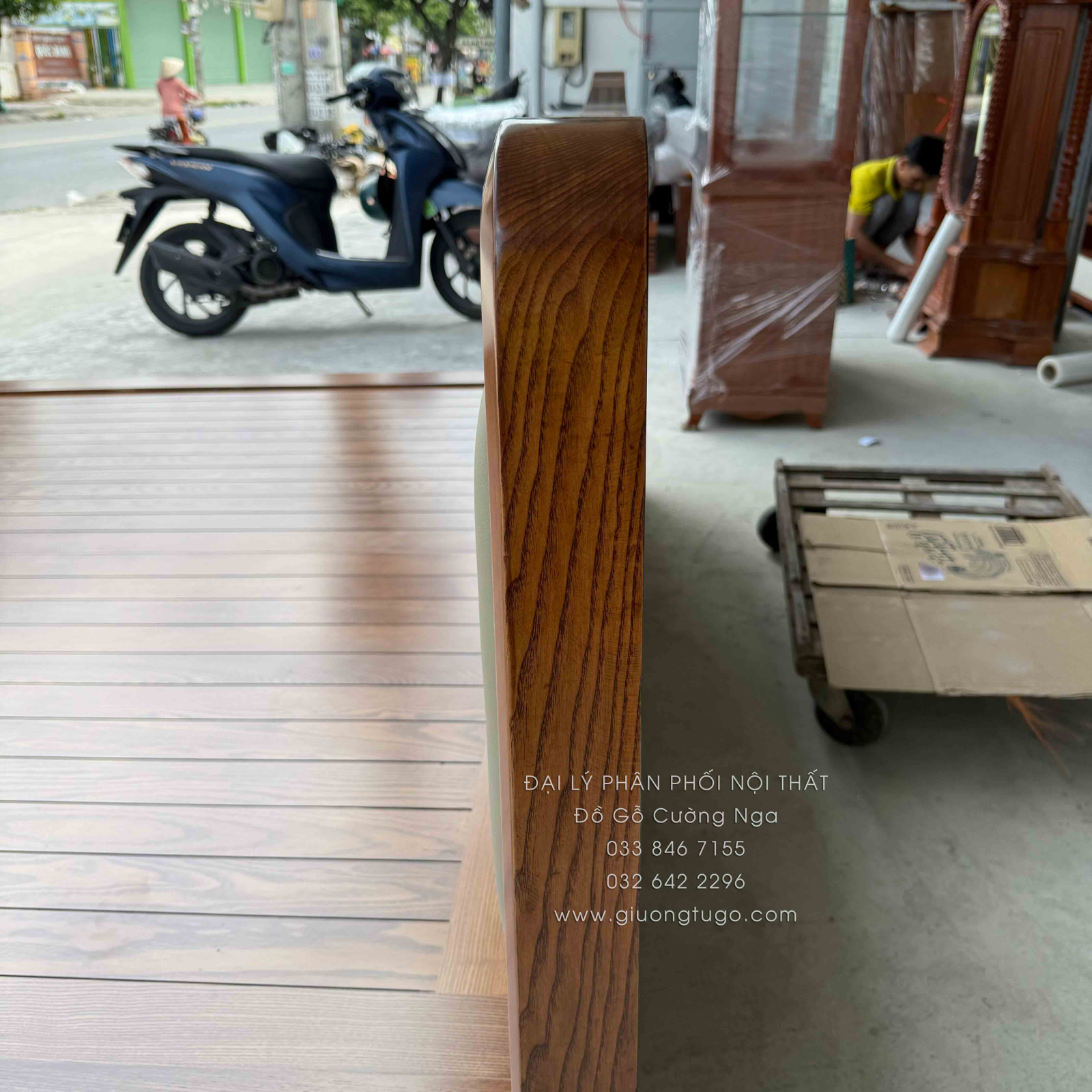 Giường Gấp Gỗ Xoan Đào 2 Ngăn Kéo Kèm Bàn (Có Kính) & Đôn Gỗ Sồi Bền Đẹp