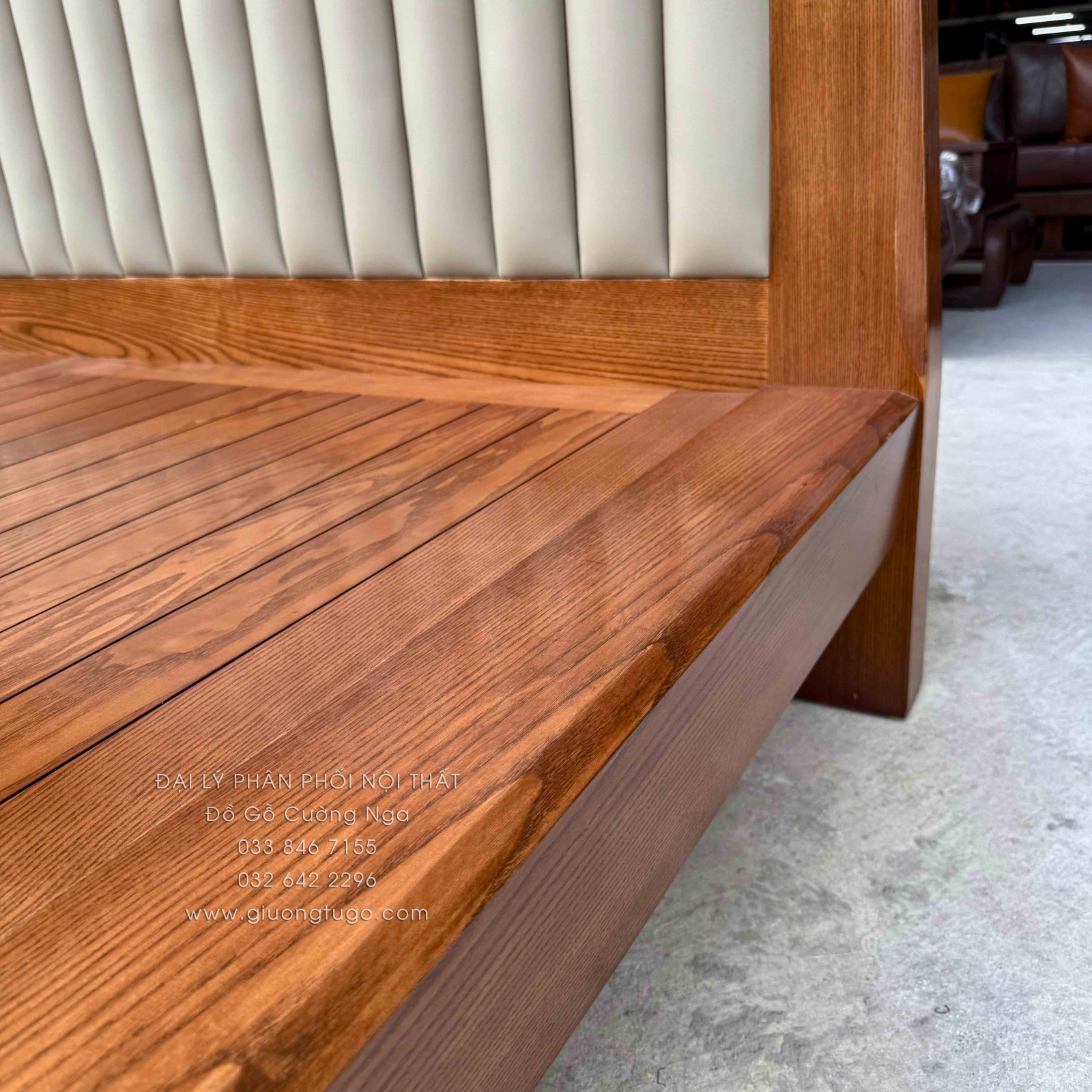 Giường Ngủ Kiểu Nhật Gỗ Sồi Nga Lau Màu Óc Chó Mẫu Chân Quỳ Bọc Nệm