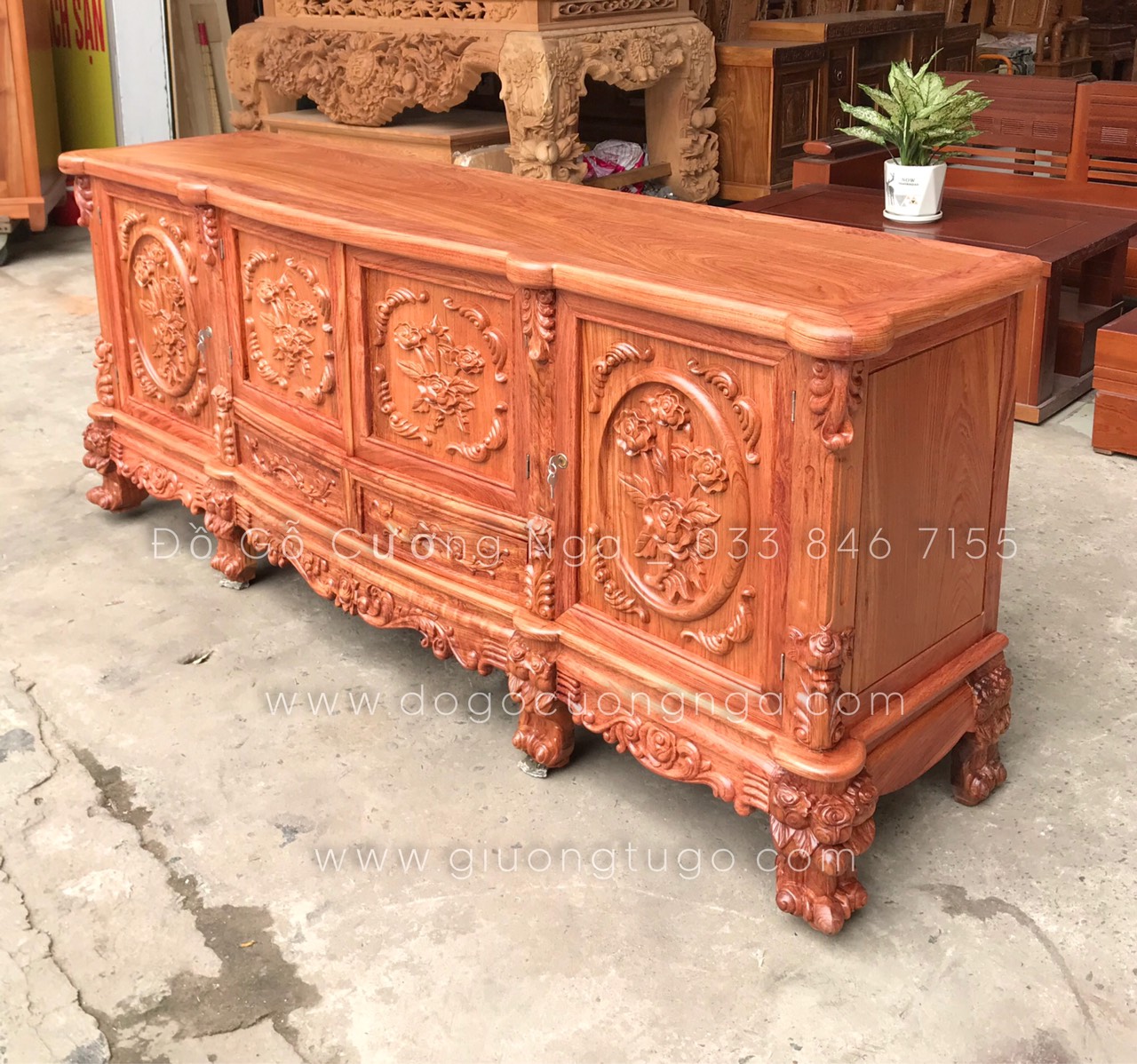 Kệ tivi gỗ Hương Đá cao cấp mẫu hoa hồng KG 05
