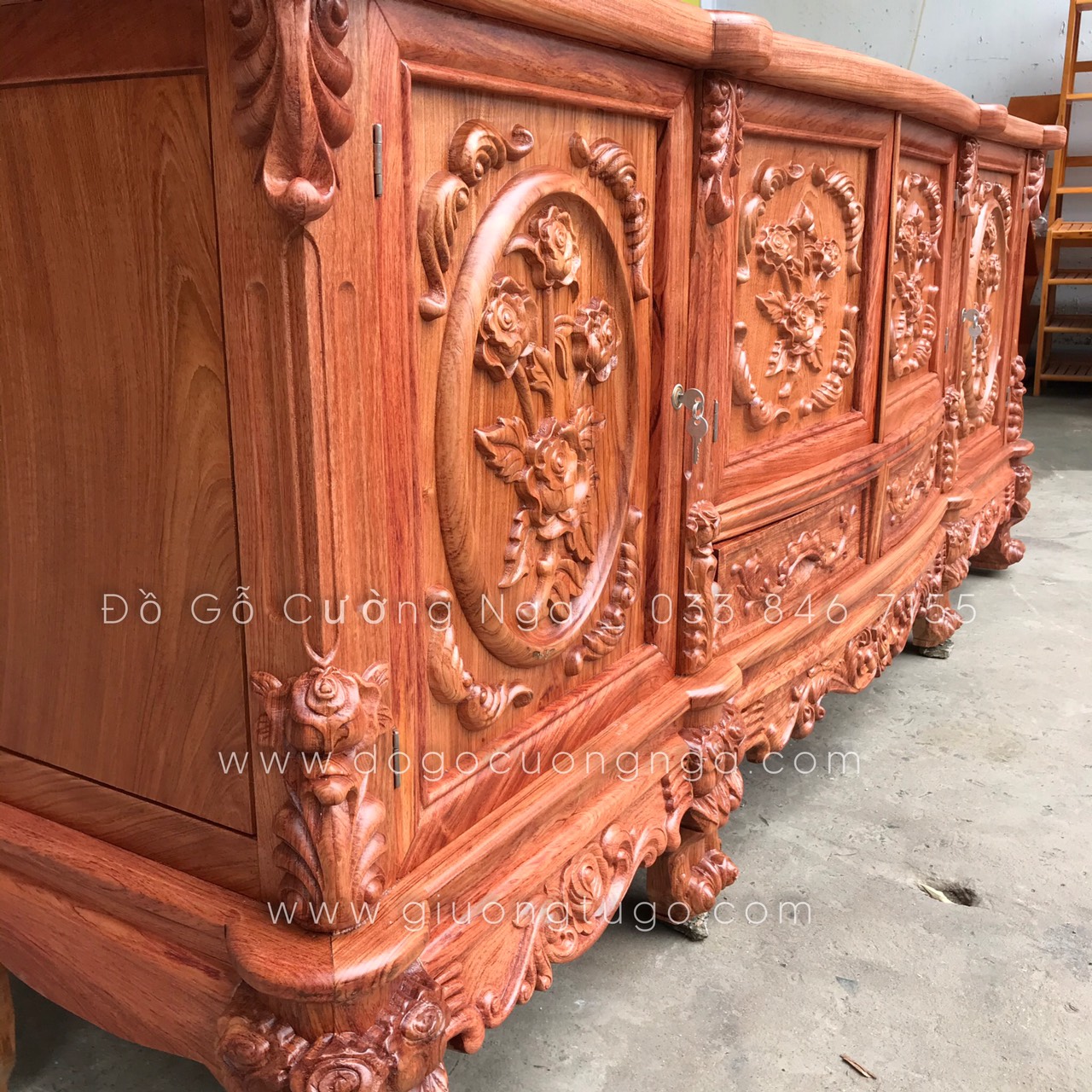 Kệ tivi gỗ Hương Đá cao cấp mẫu hoa hồng