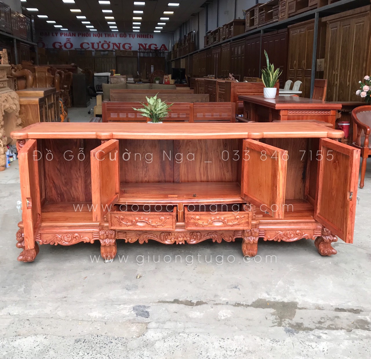 Trên đây là những thông tin cơ bản nhất của kệ tivi gỗ hương đá này. Nếu bạn đang có nhu cầu mua sắm sản phẩm hoặc các món đồ nội thất gỗ phòng khách khác tại Đồ Gỗ Cường Nga, vui lòng liên hệ với chúng tôi qua Hotline: 033 846 7155 để nhận được tư vấn về mẫu kệ tivi phòng khách tuyệt vời này bạn nhé.