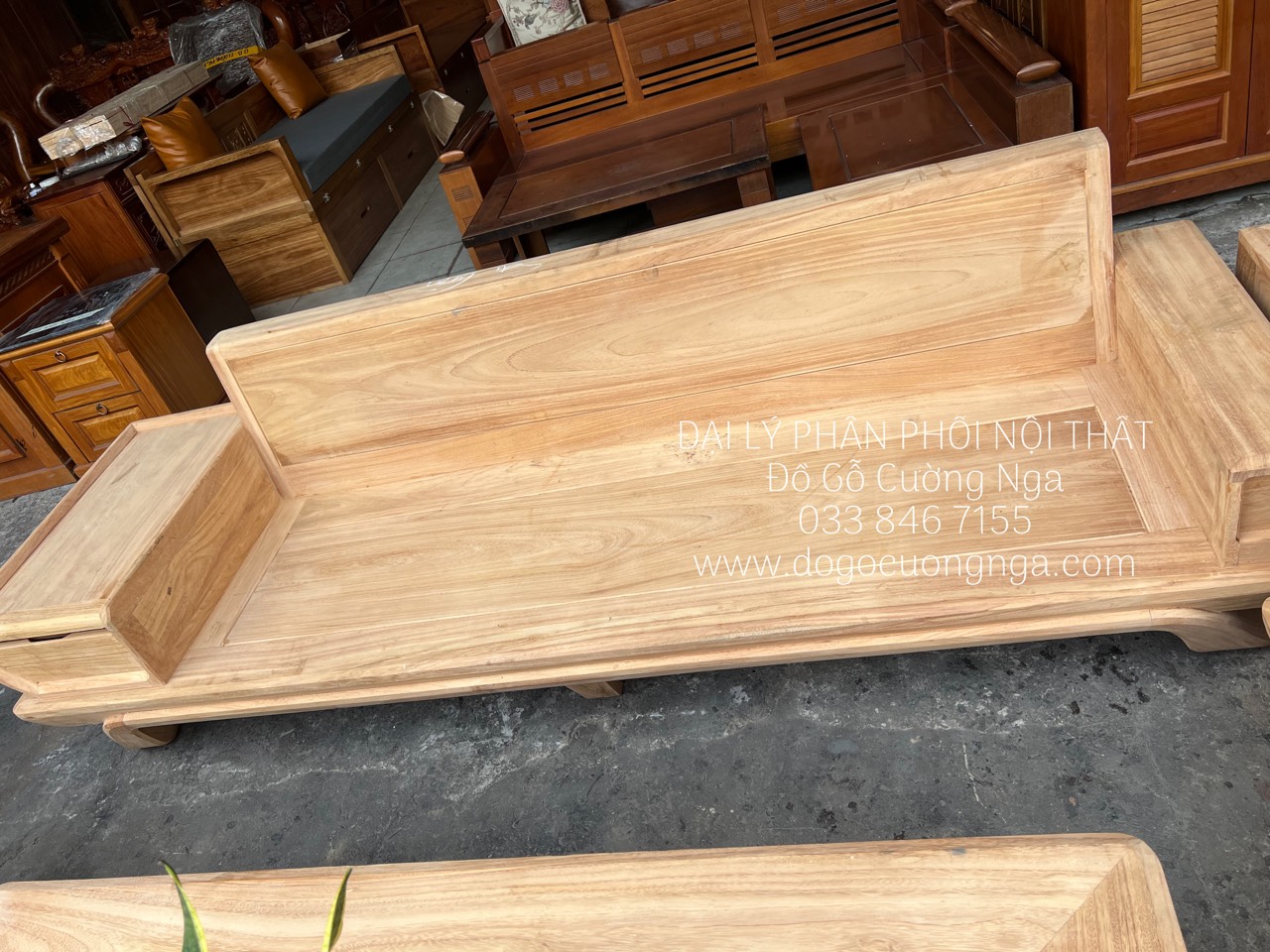 Bộ Sofa Gỗ Sồi Nga Góc L Chân Thuyền 2m8x1m9 Màu Óc Chó Sang Trọng