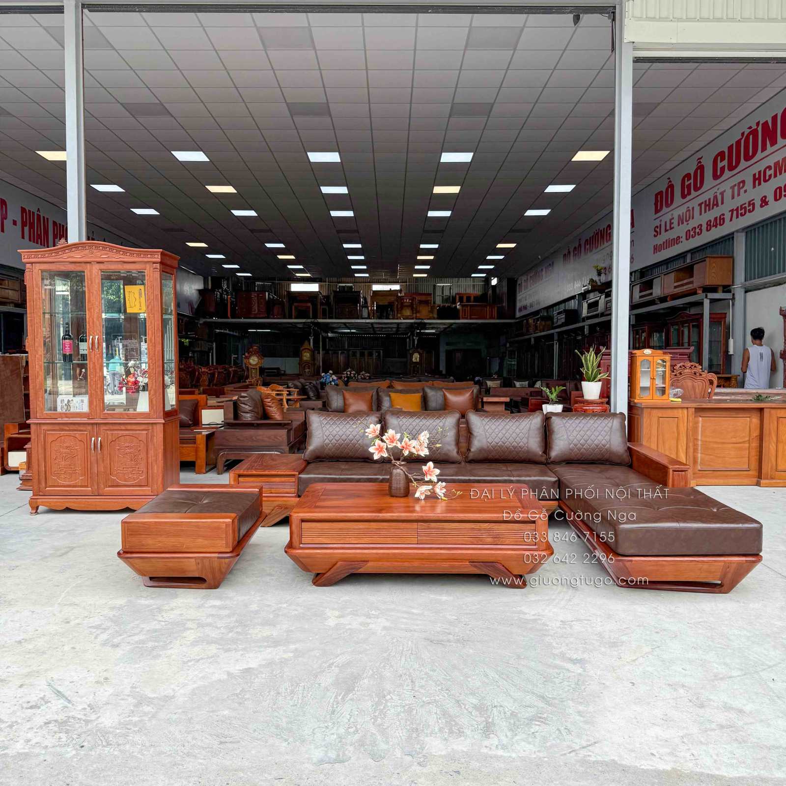 Sofa Gỗ Hương Vàng Góc L Chân Thuyền 3m25 x 2m15 Cao Cấp