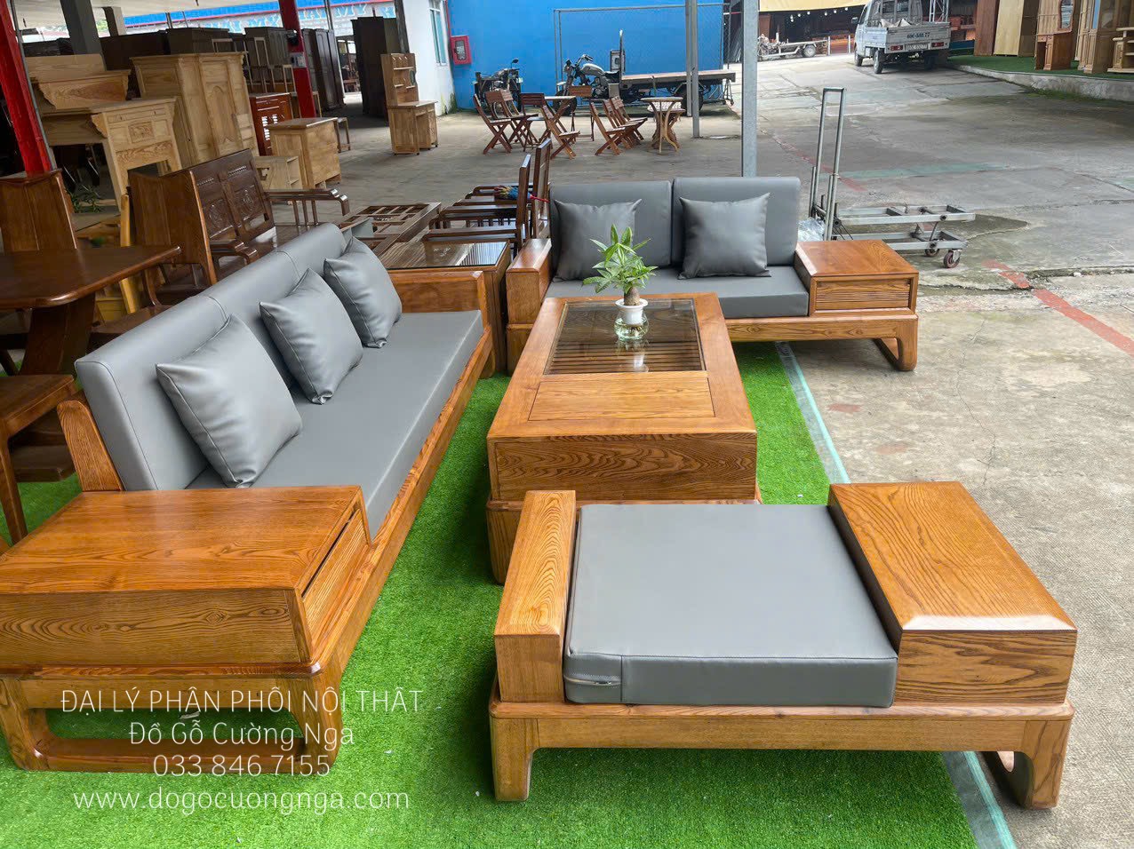 Sofa Gỗ Sồi Nga Lau Màu 2 Văng Kèm Nệm Giá Rẻ