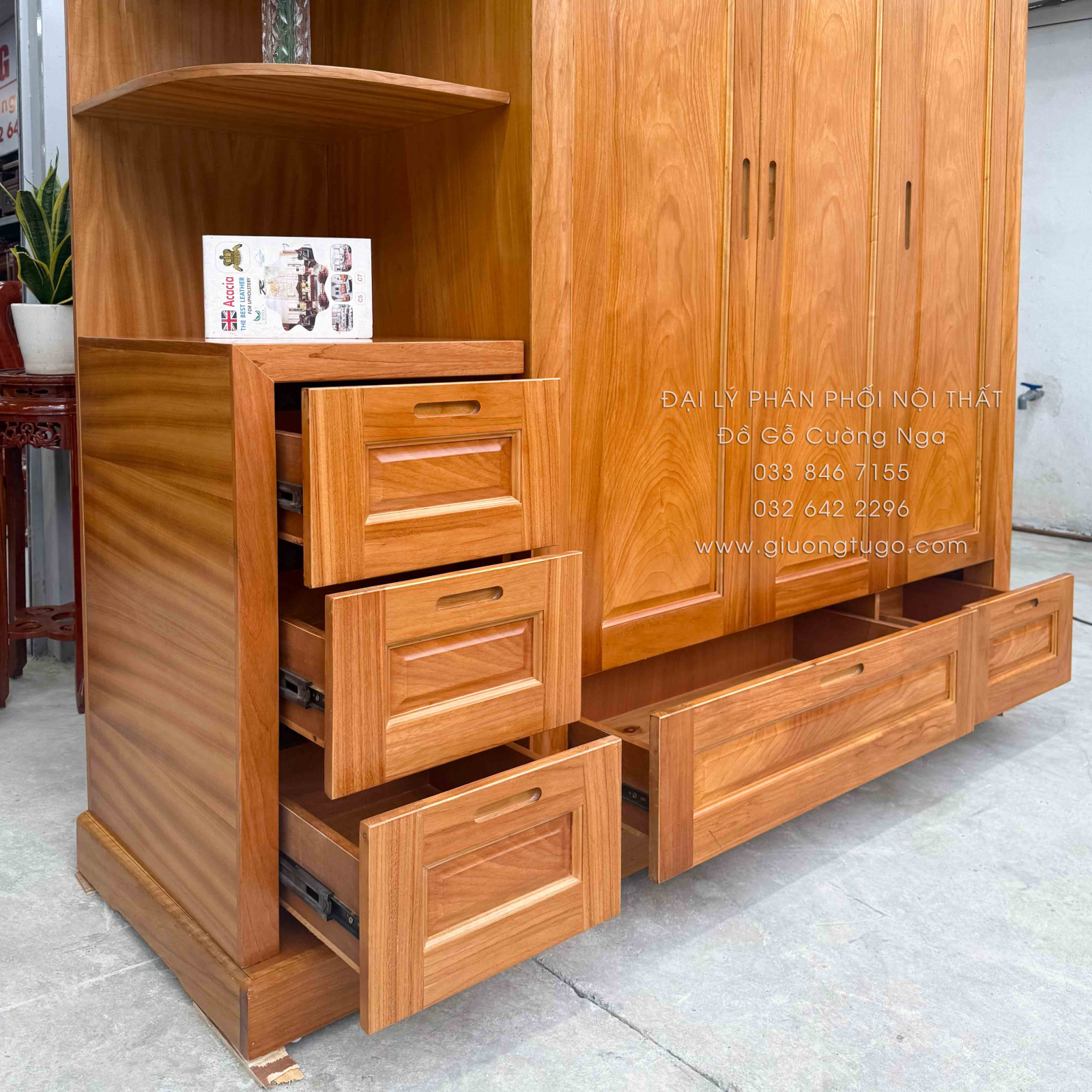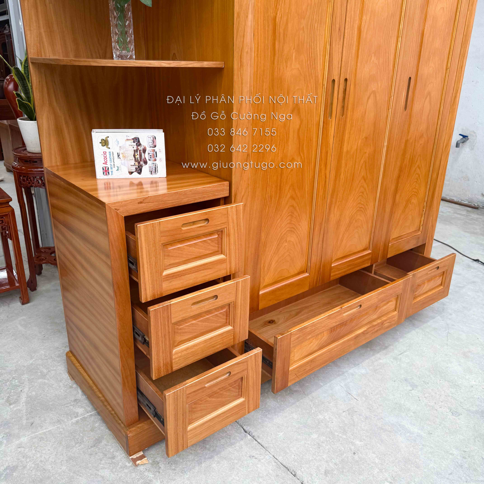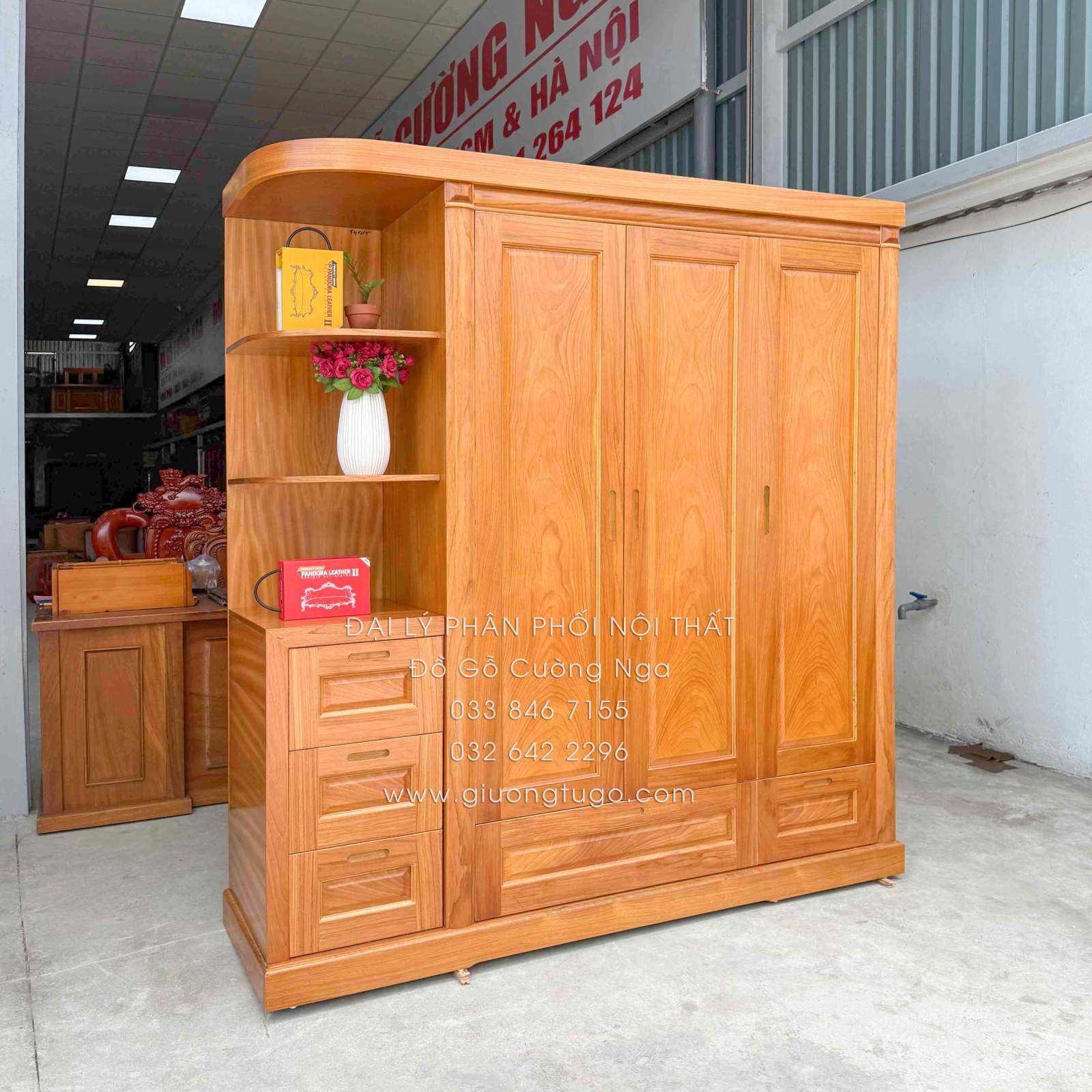 Thông tin chi tiết Tủ Áo Gỗ Gõ Đỏ 3 Cánh Kèm Góc Trang Trí Bo Cạnh