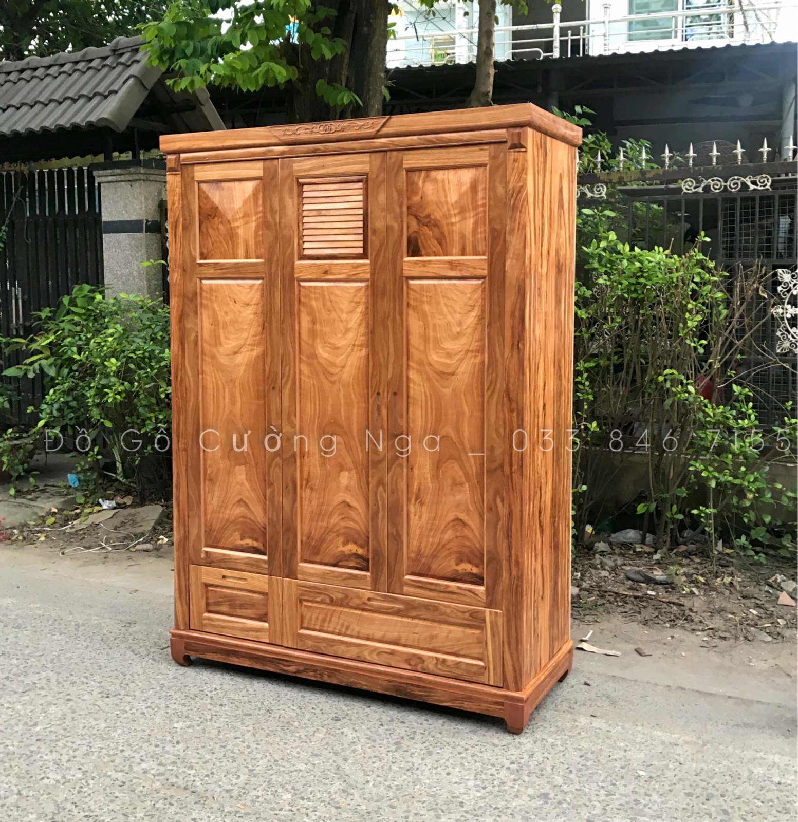 Tủ áo gỗ hương xám 3 cánh - 1m6 mẫu chóp
