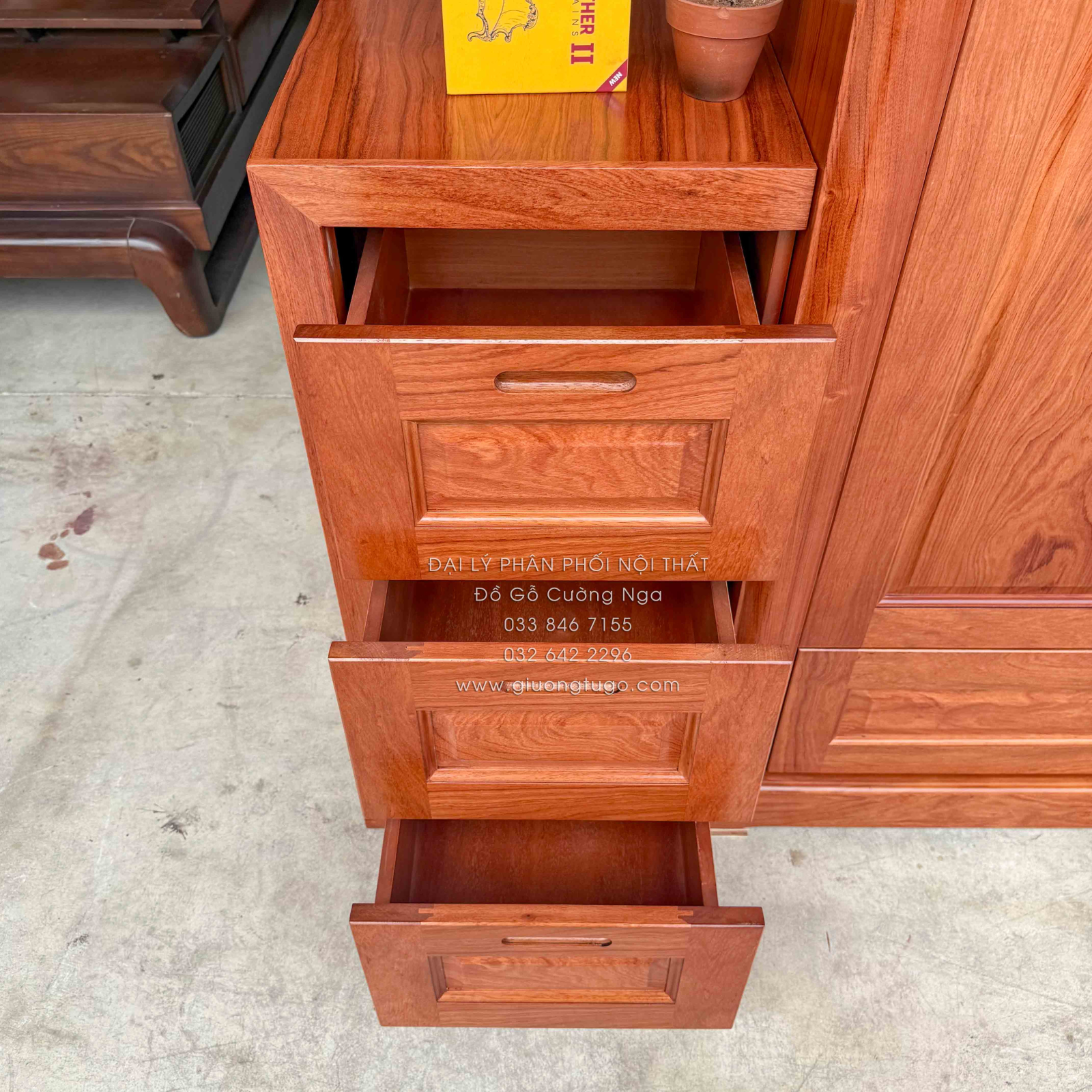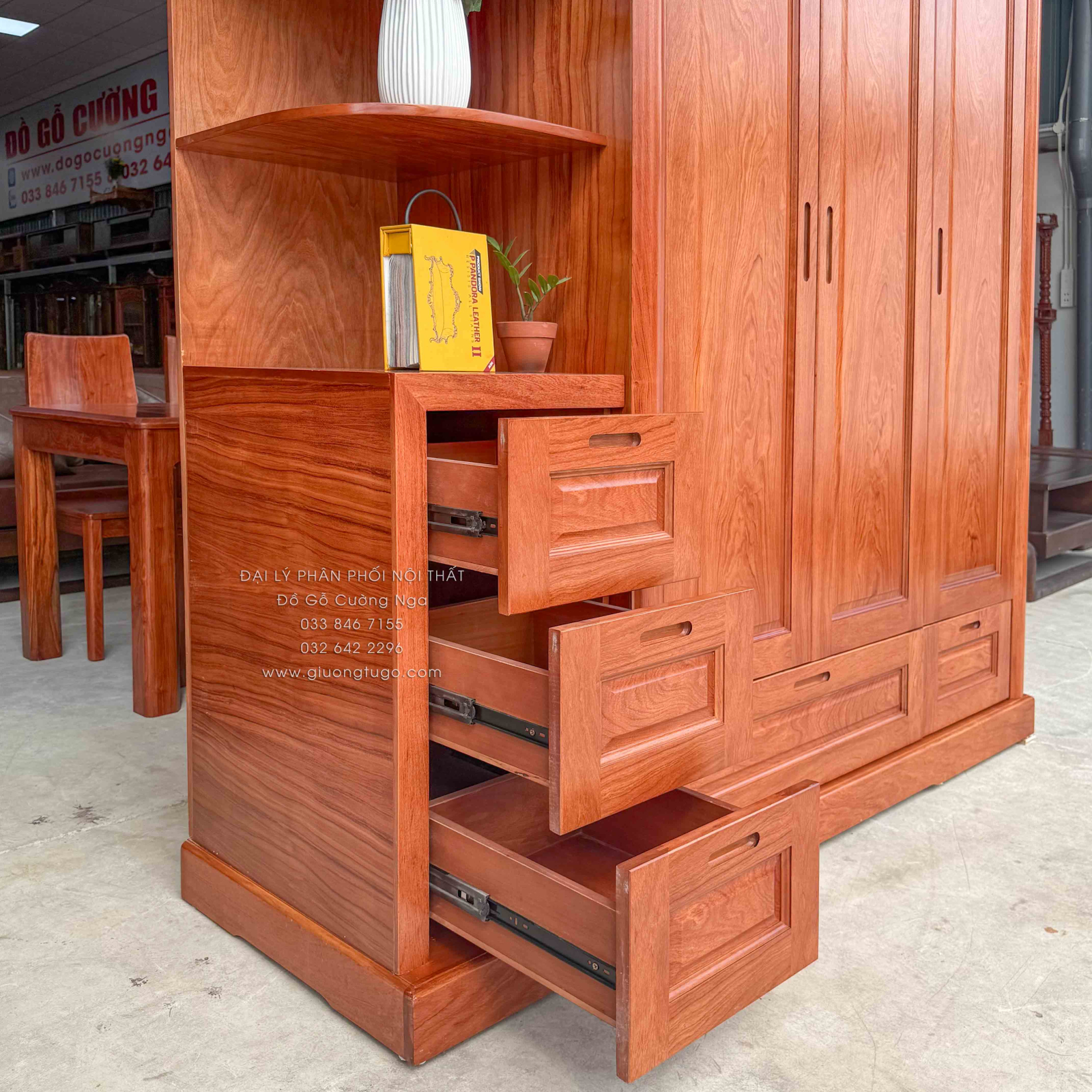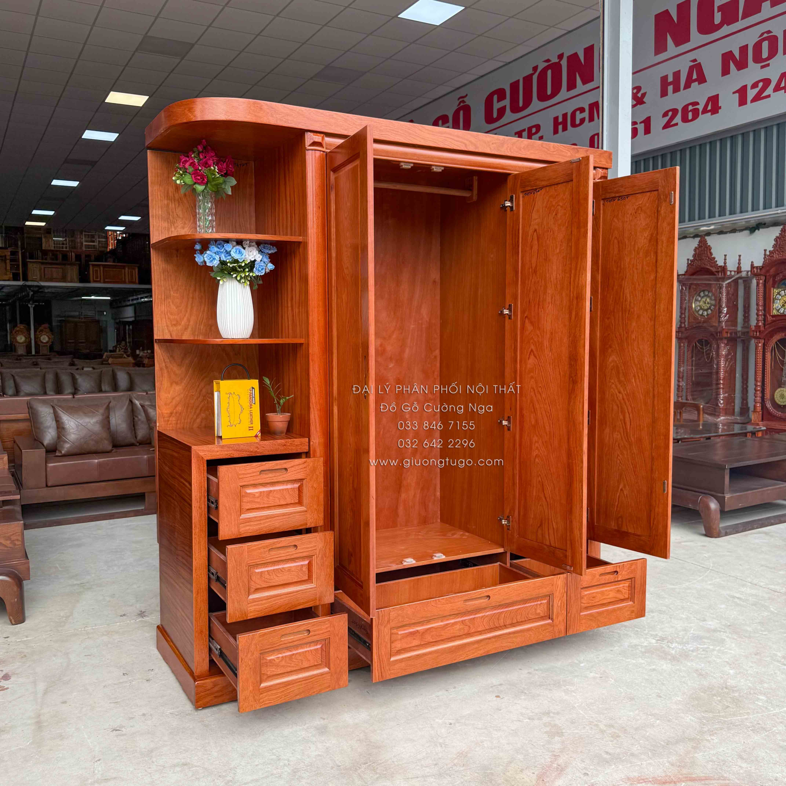 Thông tin chi tiết Tủ Áo Gỗ Hương Đá 3 Cánh Kèm Góc Trang Trí Bo Cạnh