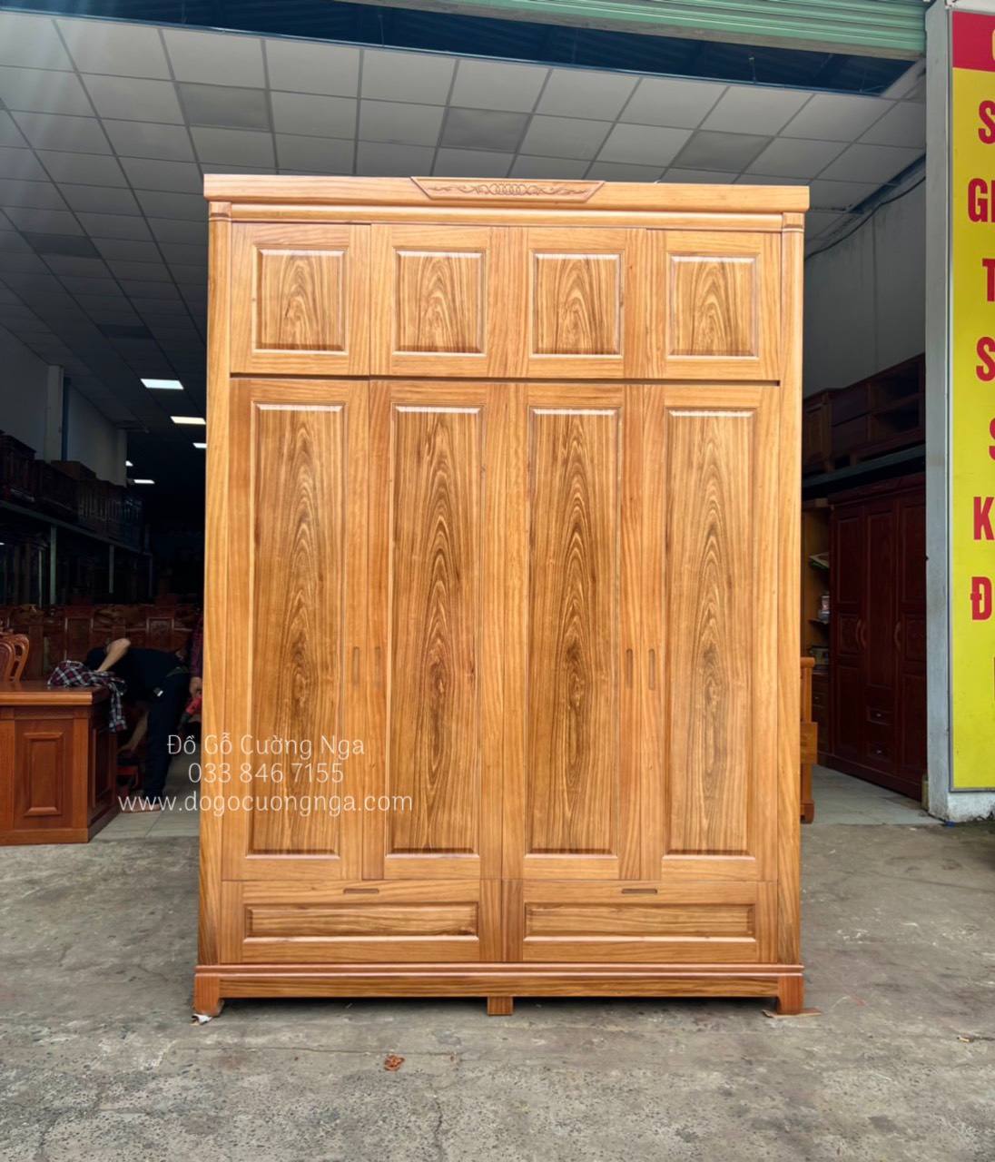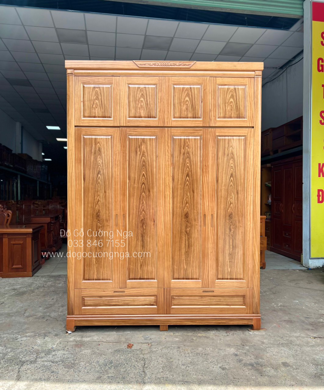 Tủ Áo Gỗ Hương Xám 4 Cánh Cao 2 Tầng Bền Đẹp