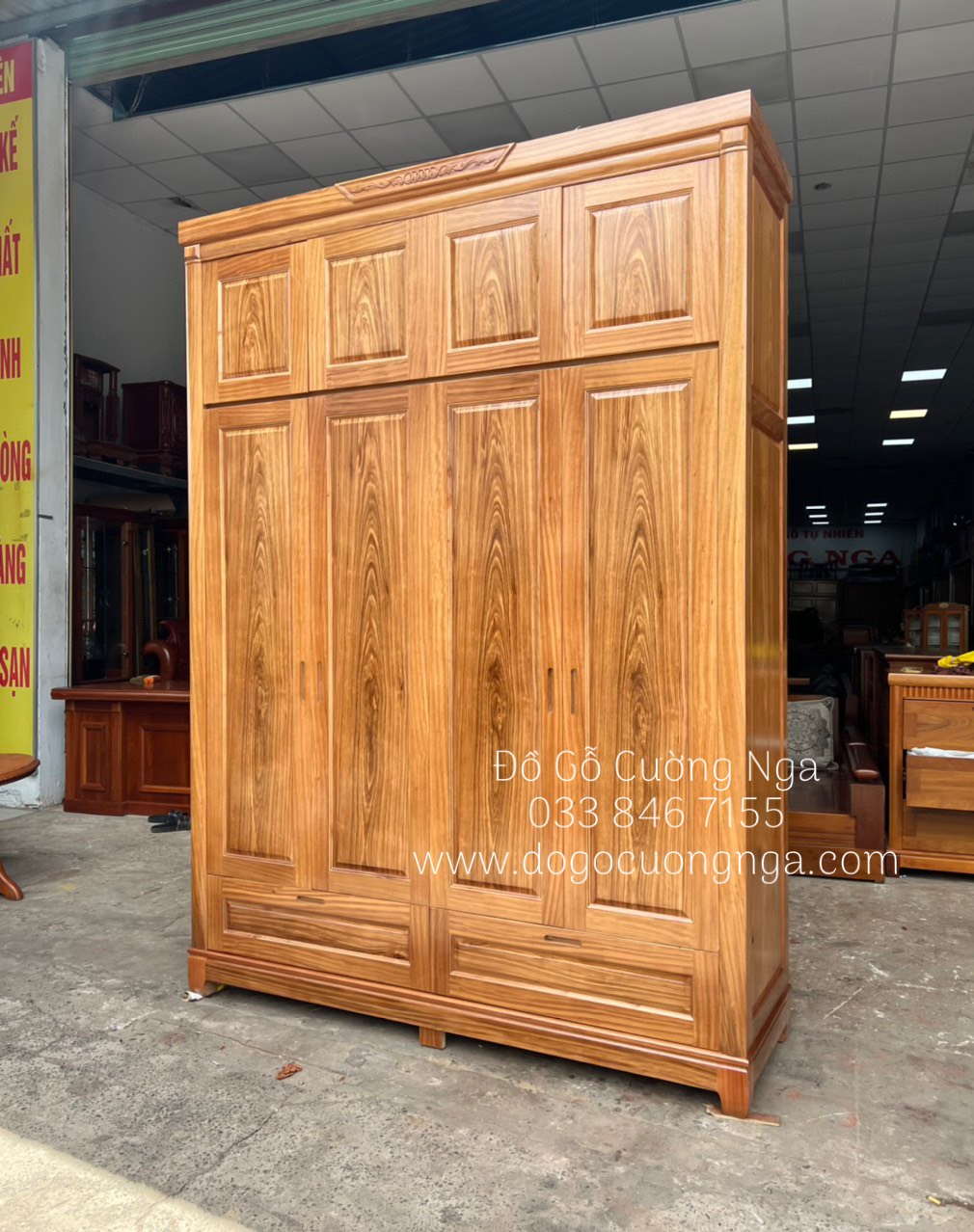 Thông tin chi tiết tủ áo gỗ hương xám 4 cánh 2 tầng hiện đại