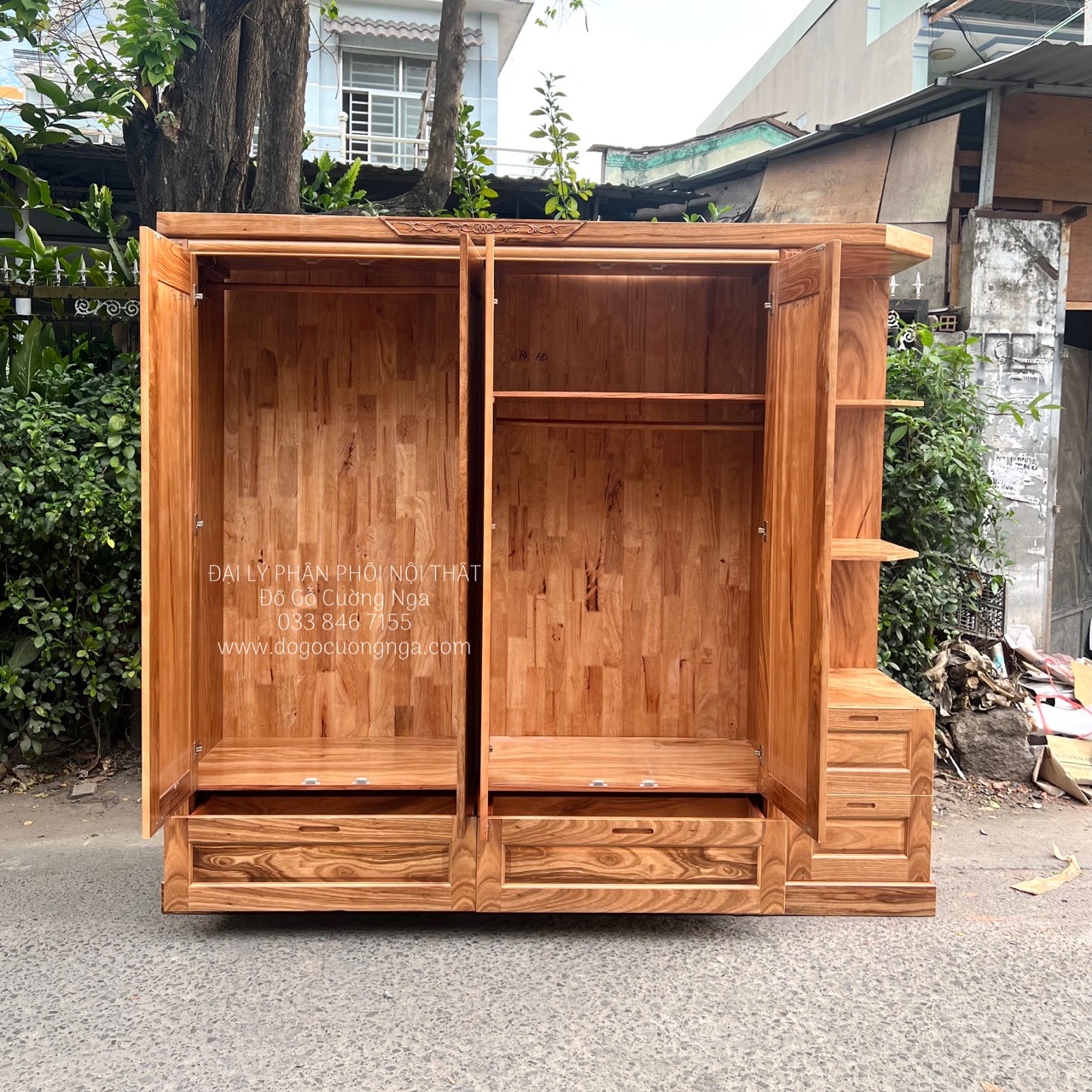 Tủ Áo Gỗ Hương Xám 4 Cánh Góc Trang Trí Bền Đẹp