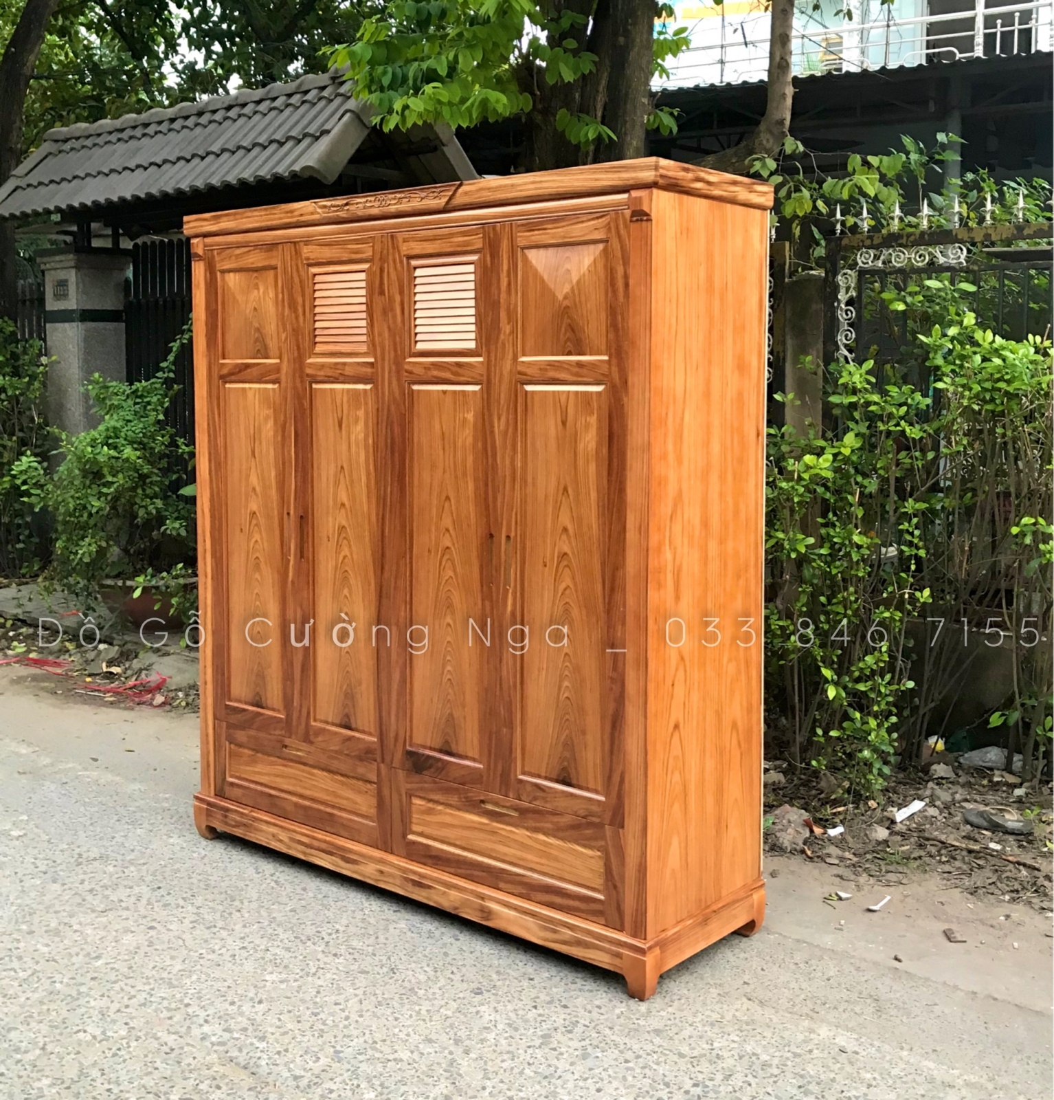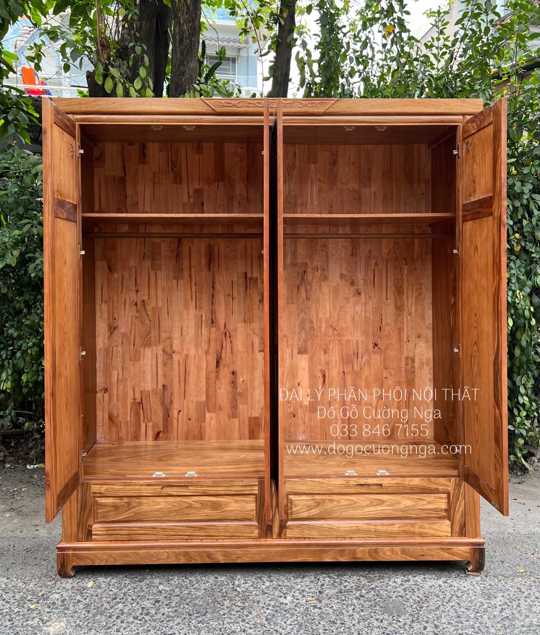 Chi tiết tủ áo gỗ hương xám 4 cánh