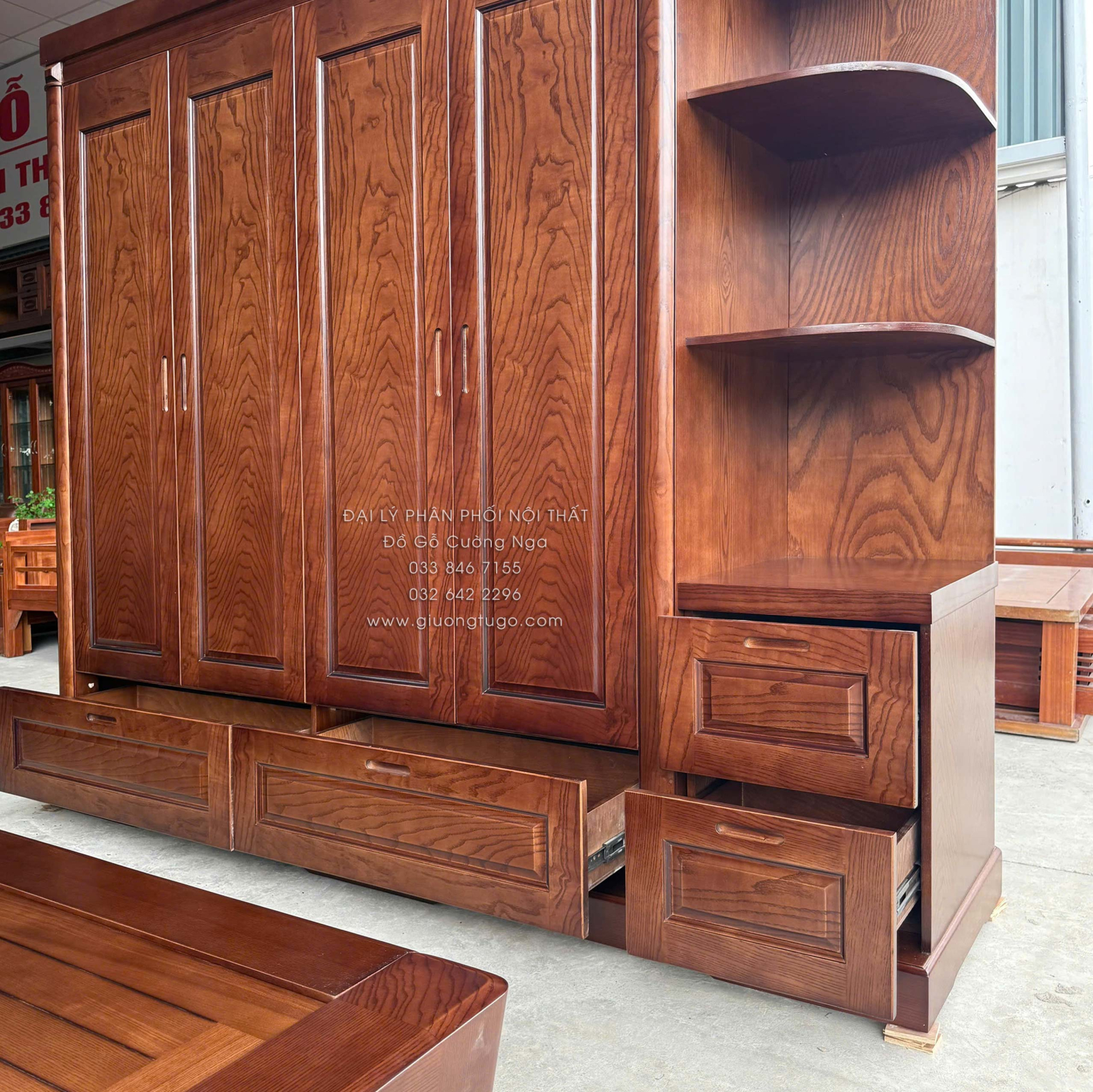 Tủ Áo Gỗ Sồi Nga 4 Cánh Kèm Góc Trang Trí Bo Cạnh - Màu Óc Chó