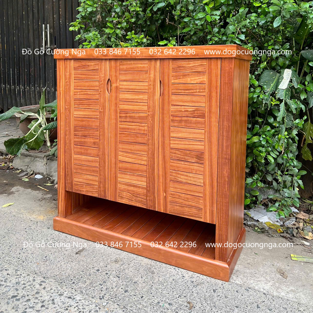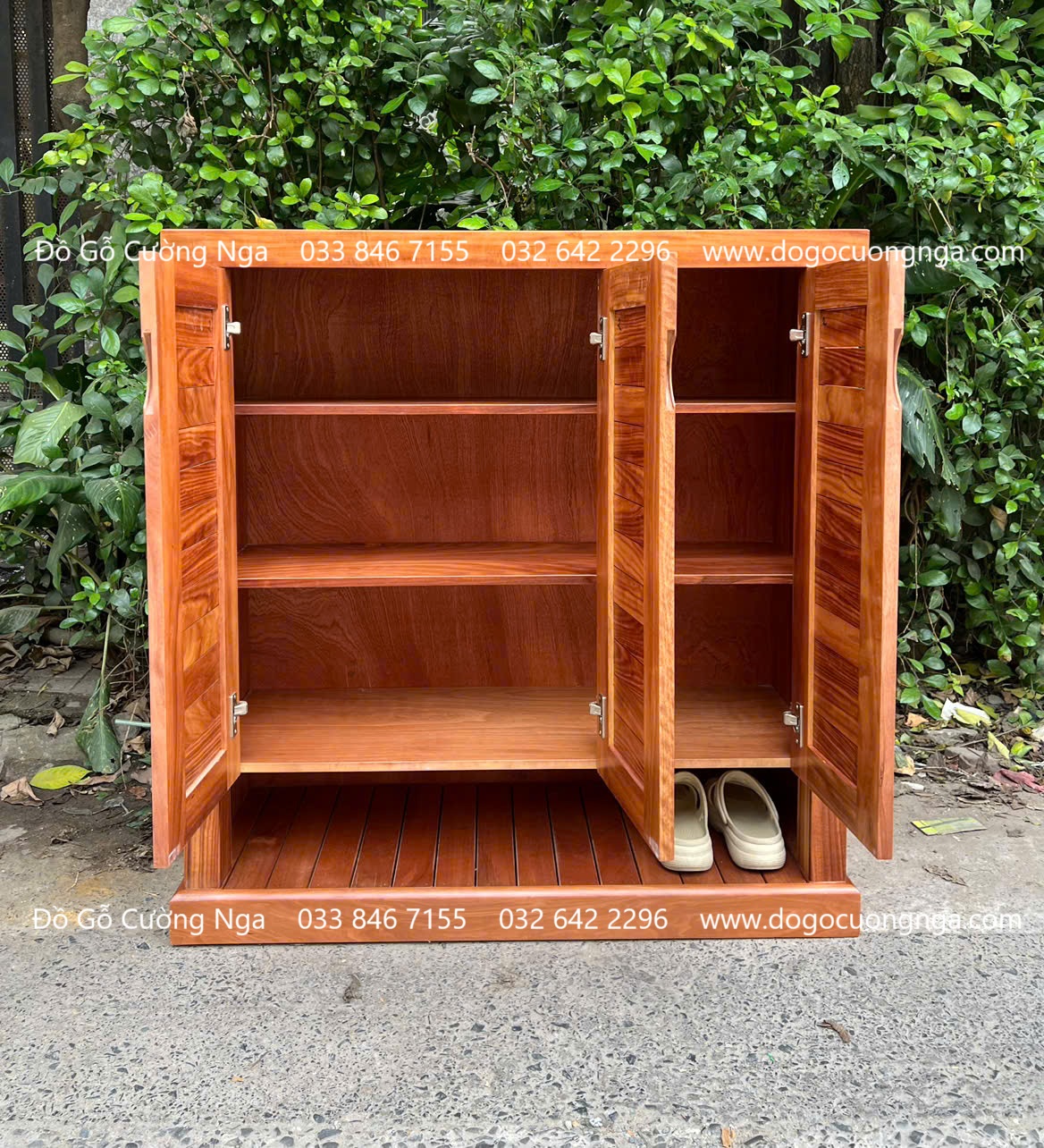 Tủ Giày Dép Gỗ Cẩm Vân 3 Cánh Thiết Kế Để Dép Đi Hằng Ngày