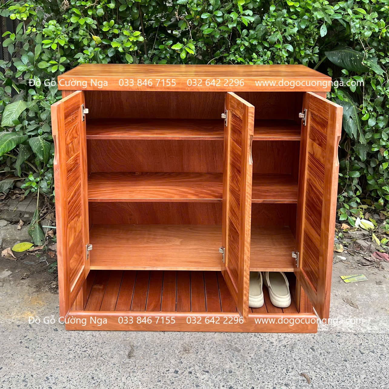 Thông tin chi tiết tủ giày gỗ cẩm 3 cánh lá sách