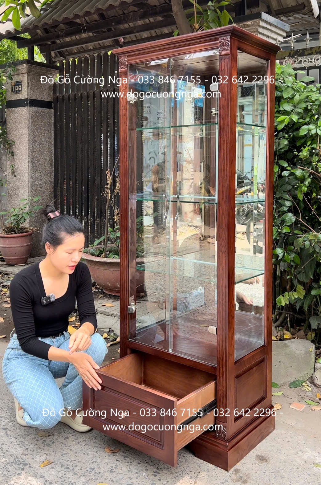 Tủ Ly Trưng Bày - Tủ Rượu Gỗ Sồi Nga Lau Màu Óc Chó Vuông 65cm Đẹp Mắt