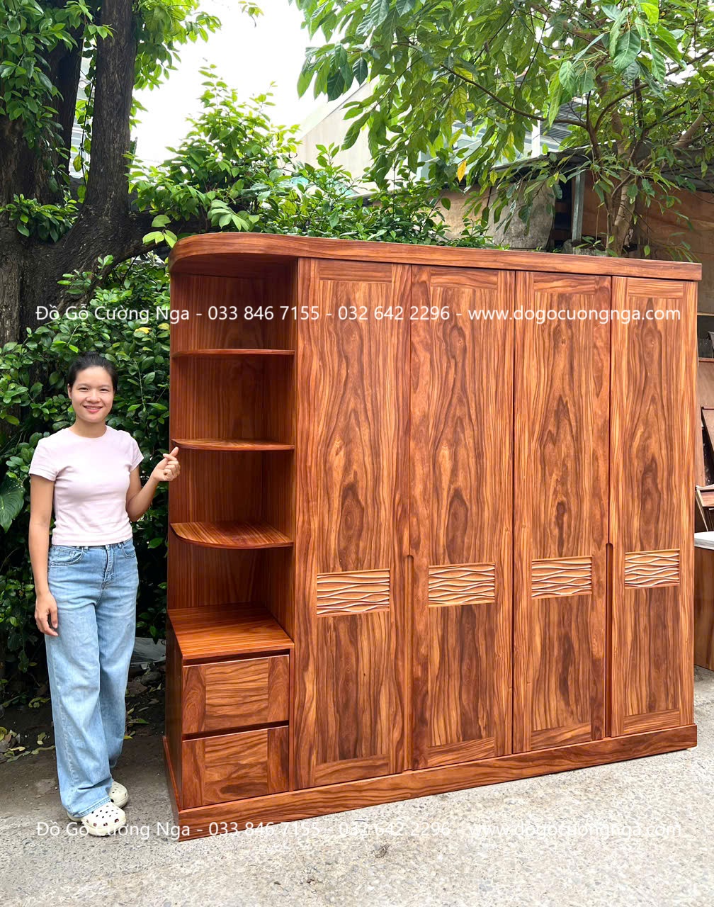 Giới Thiệu Về Tủ Quần Áo Gỗ Cẩm Vân 4 Cánh Kết Hợp Góc Trang Trí