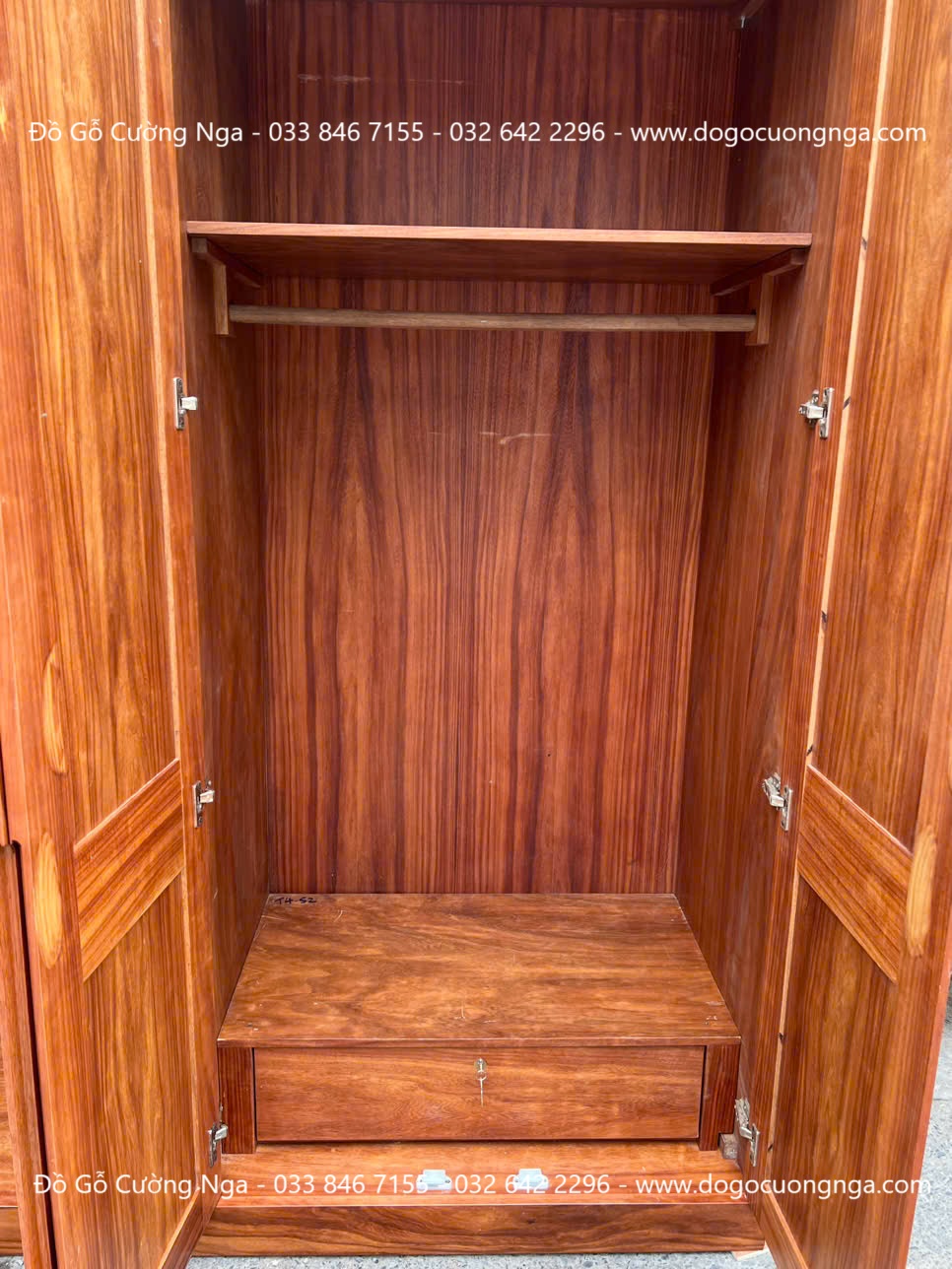 Thiết kế bên trong tủ áo gỗ cẩm vân 4 cánh