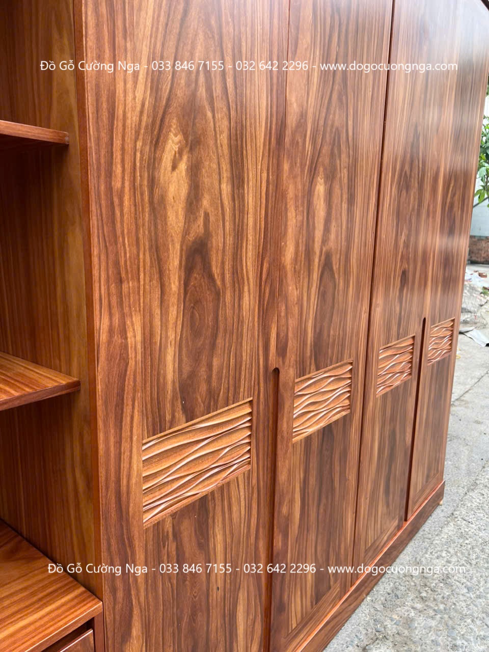 Tủ áo gỗ cẩm 4 cánh góc trang trí vế trái