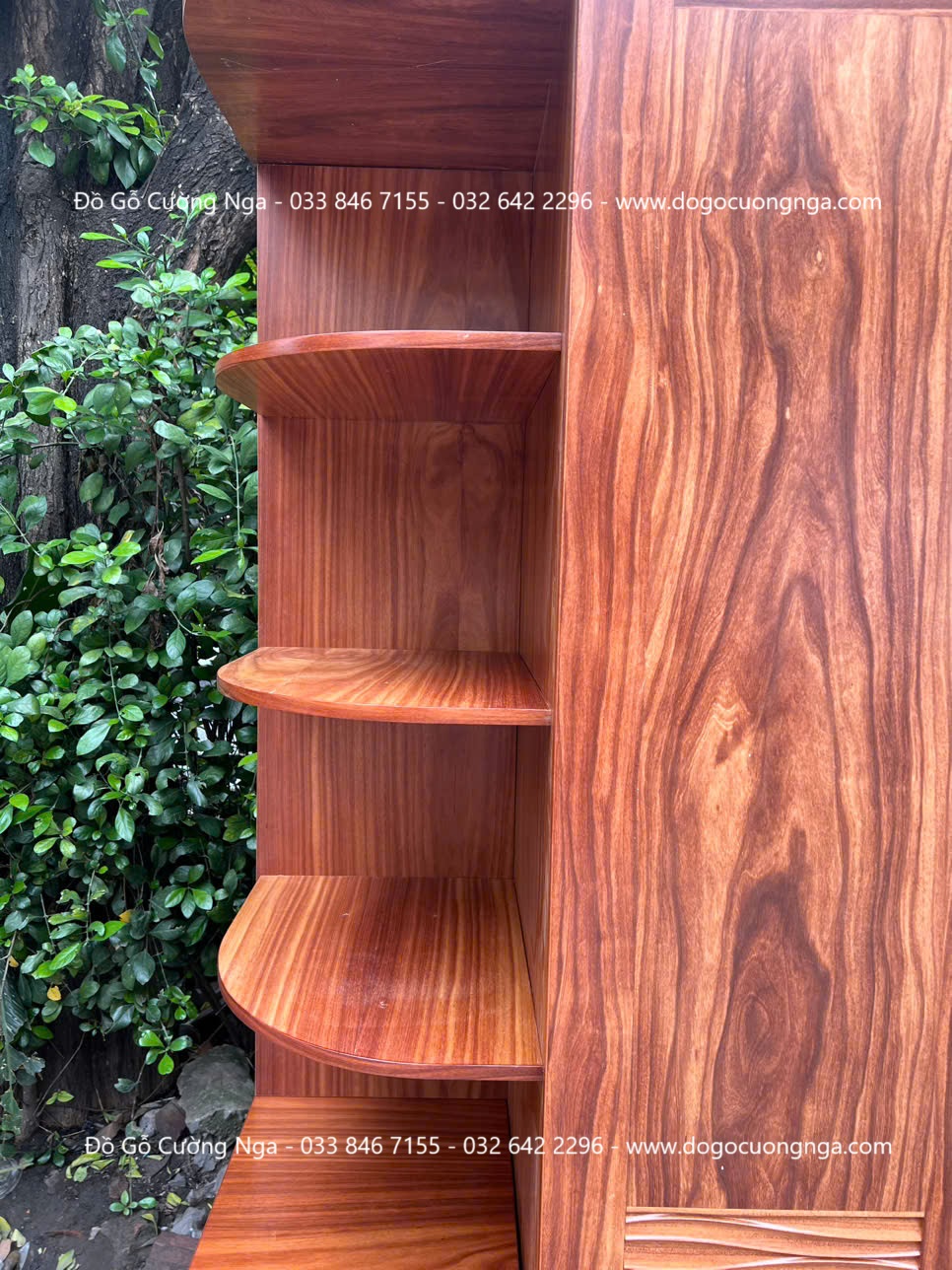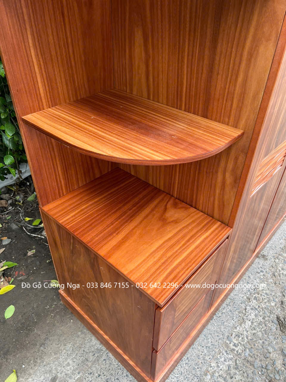 - Tủ áo gỗ cẩm kèm góc trang trí tiện dụng, có thể dùng để trưng bày đồ decor, sách hoặc túi xách.