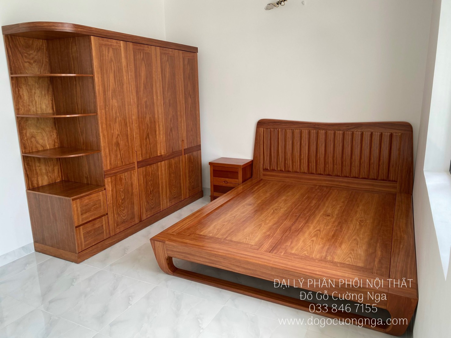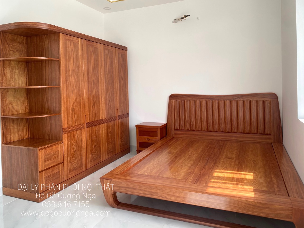 Tủ Áo Gỗ Cẩm 4 Cánh Góc Hiện Đại