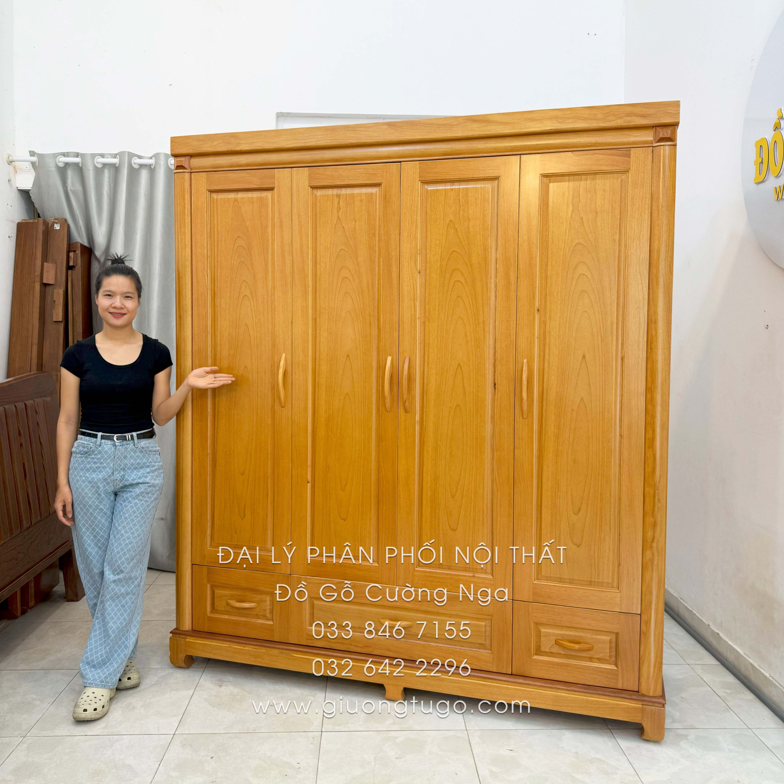 Thông tin chi tiết Tủ Quần Áo Gỗ Gõ Đỏ 4 Cánh 1m9 Sang Trọng