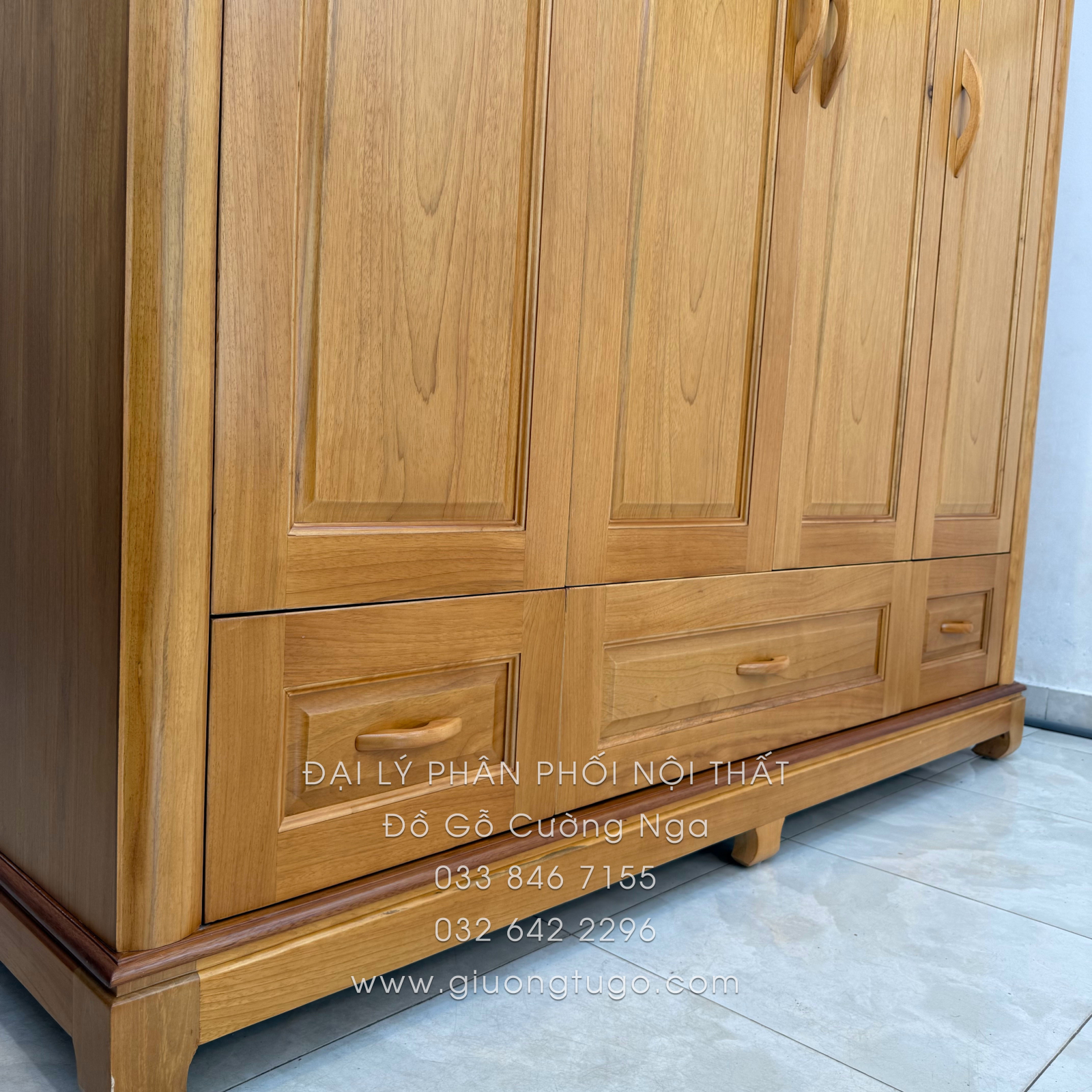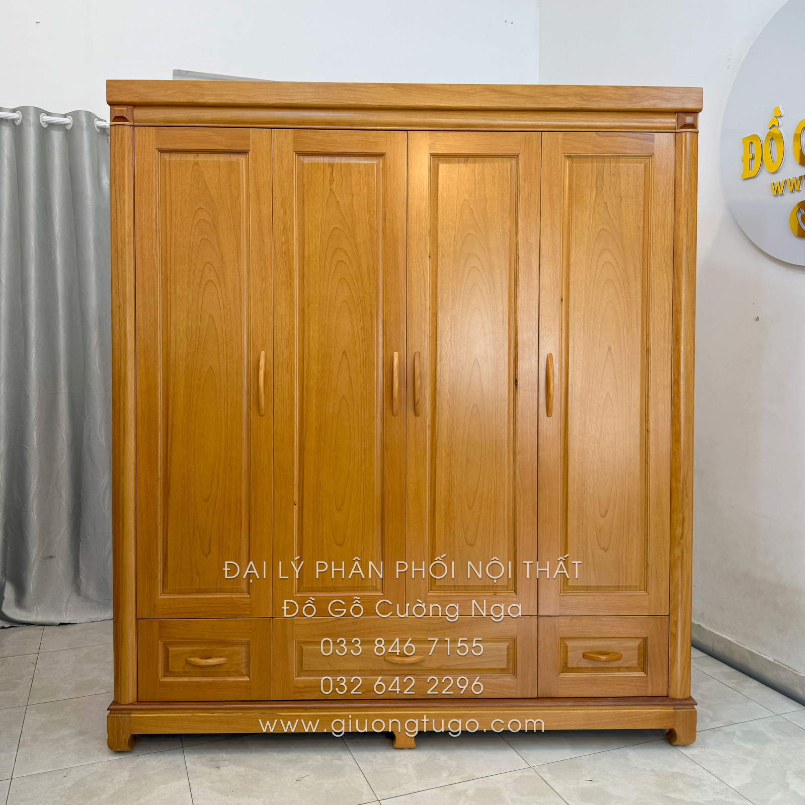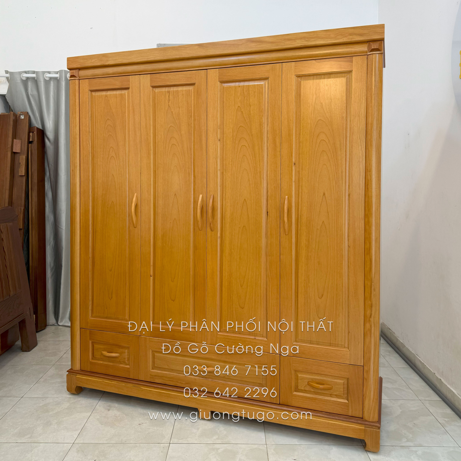Tủ Quần Áo Gỗ Gõ Đỏ 4 Cánh 1m9 Sang Trọng