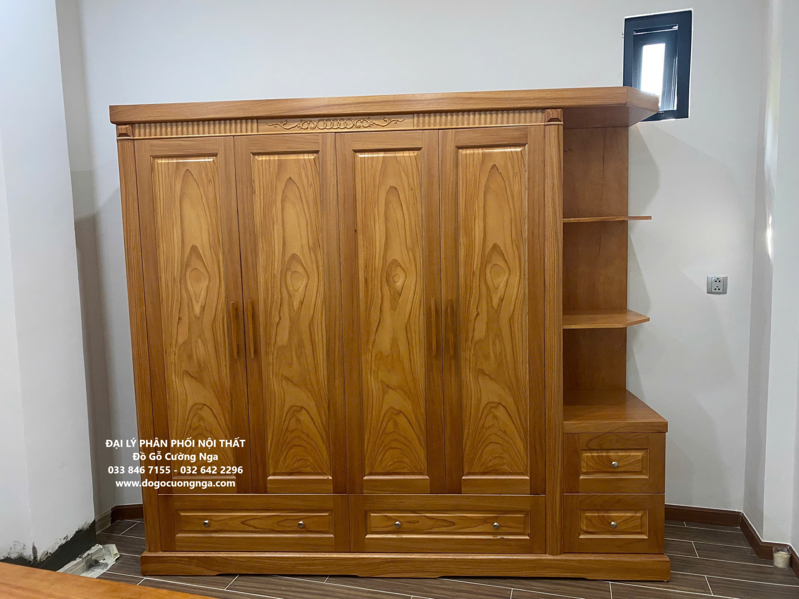 Tủ áo gỗ gõ đỏ 4 cánh góc giao khách hiện đại