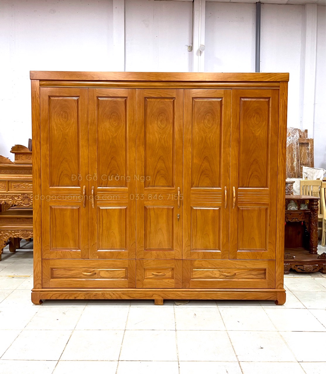 Tủ quần áo gỗ gõ đỏ tự nhiên 5 cánh 3 buồng lớn