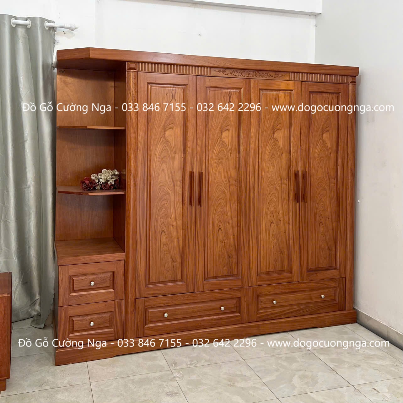 Tủ Quần Áo Gỗ Hương Đá 4 Cánh Kèm Kệ Vế Trái