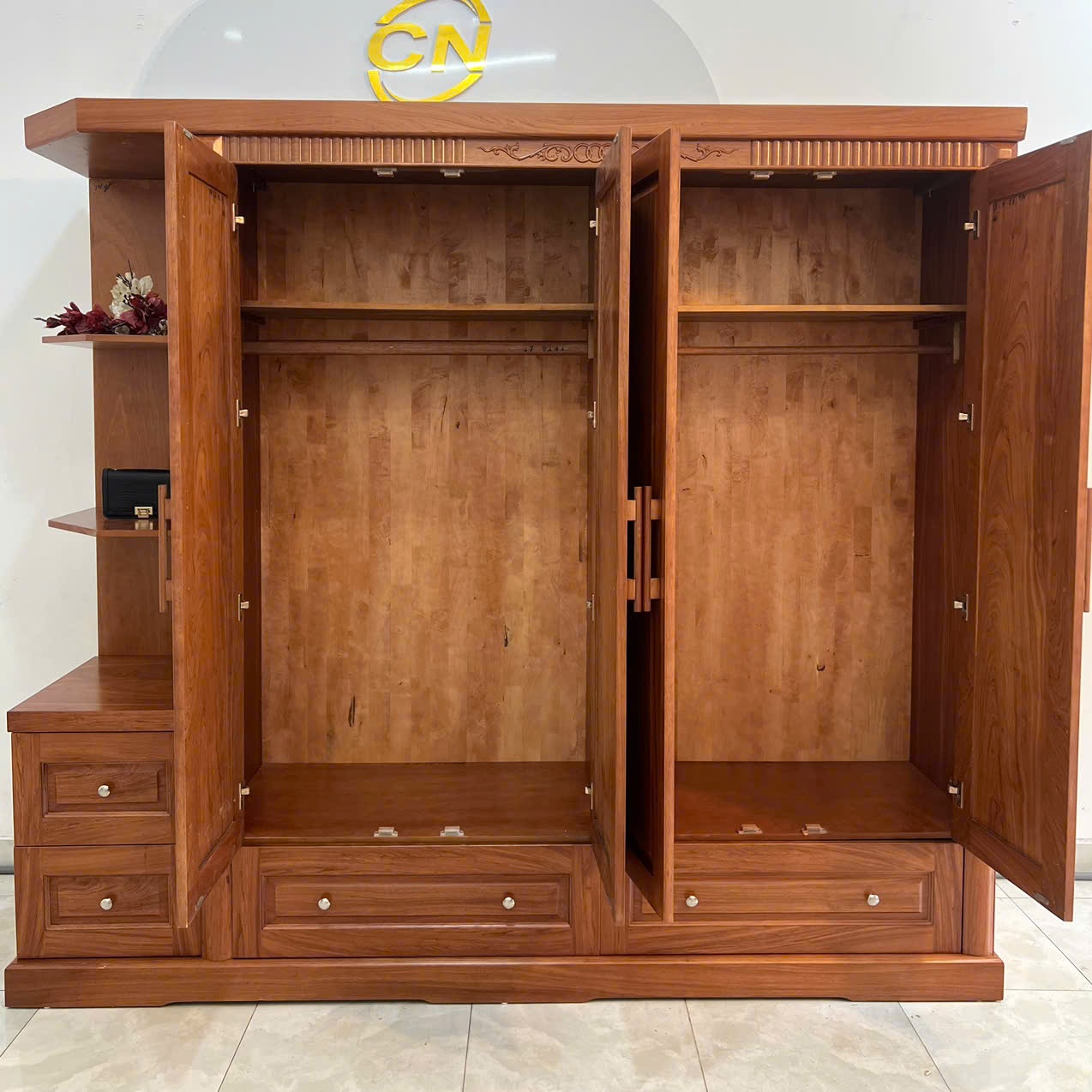 Tủ Quần Áo Gỗ Hương Đá 4 Cánh Kèm Kệ Tiện Nghi