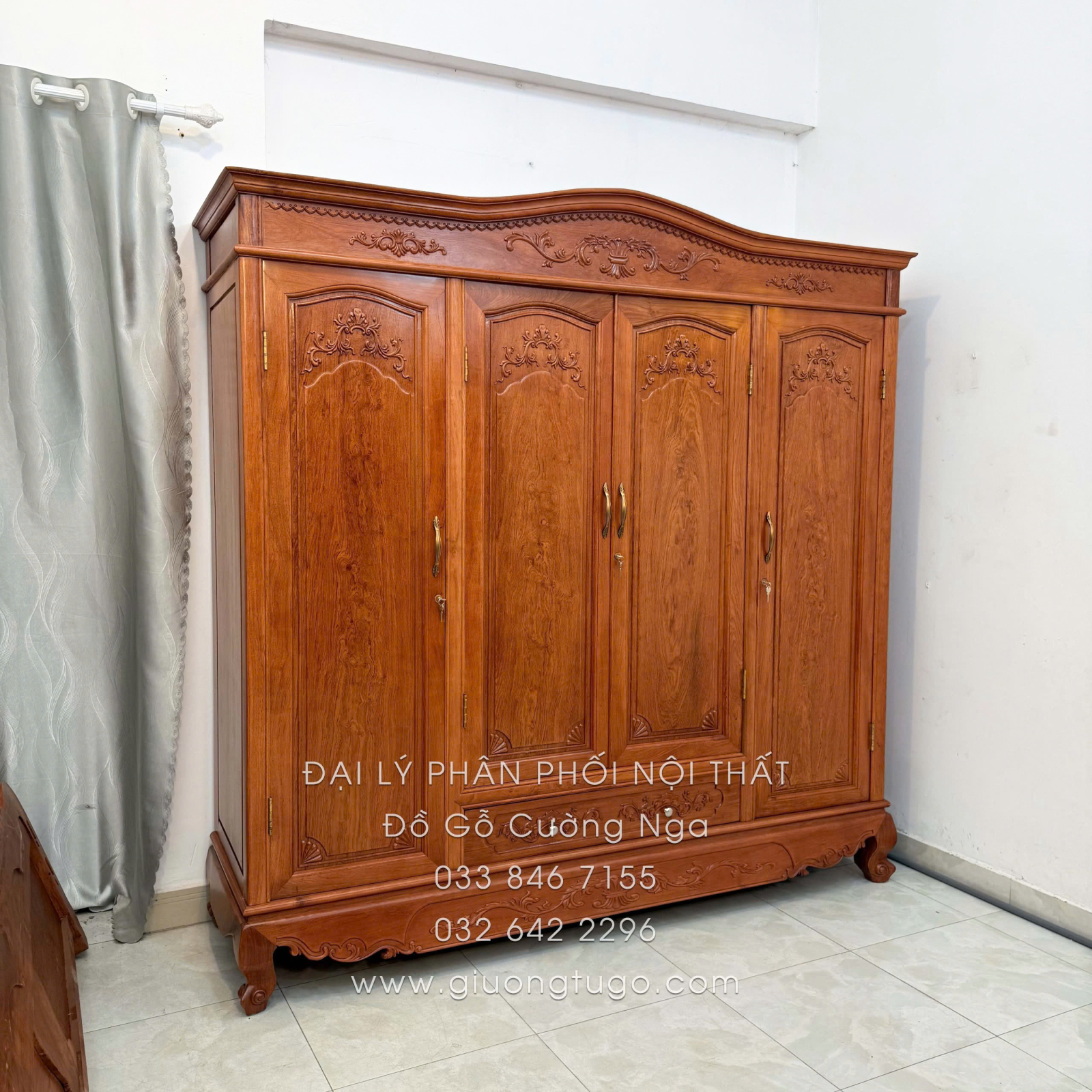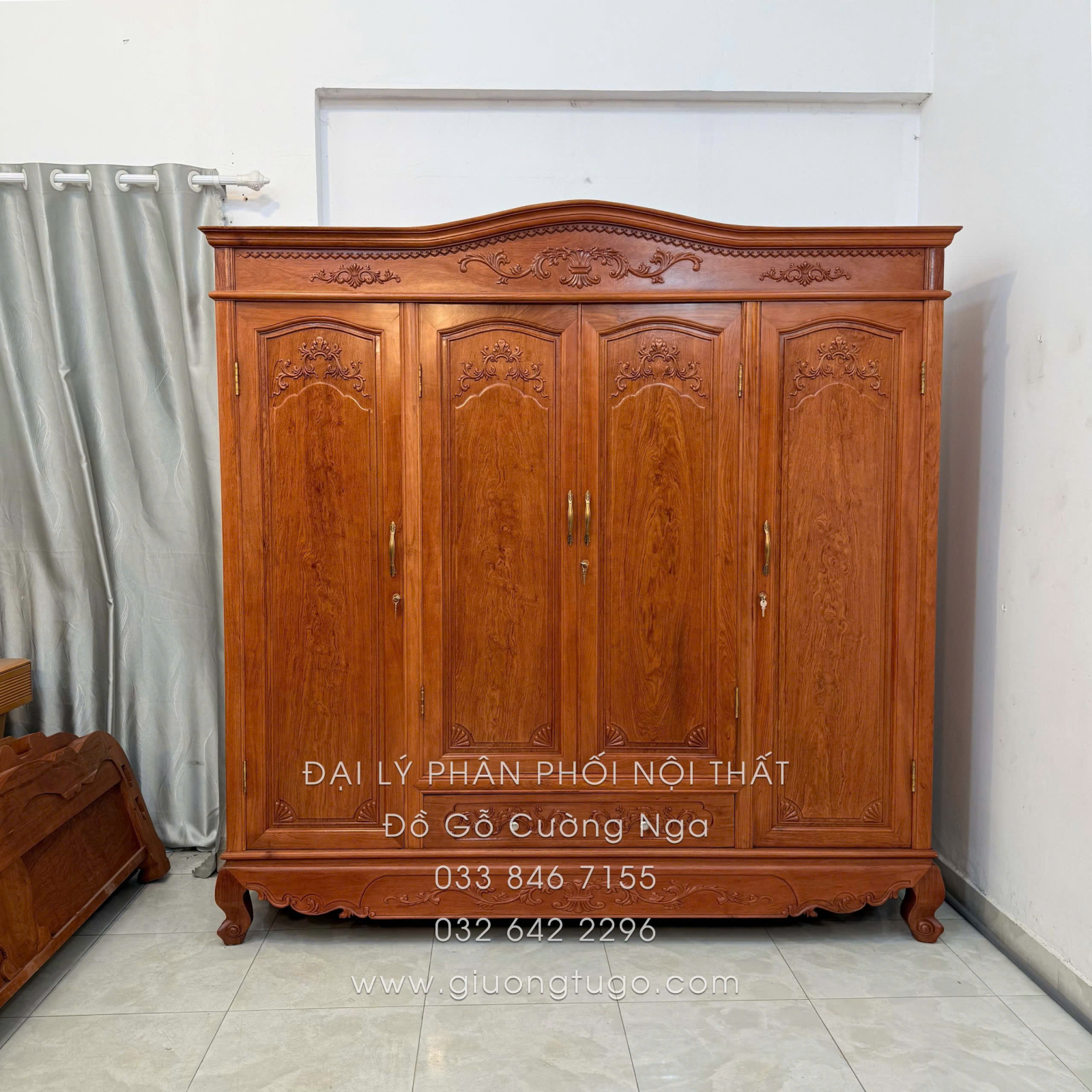 Thông tin chi tiết Tủ Quần Áo Gỗ Hương Đá 4 Cánh Tân Cổ Điển Trang Nhã
