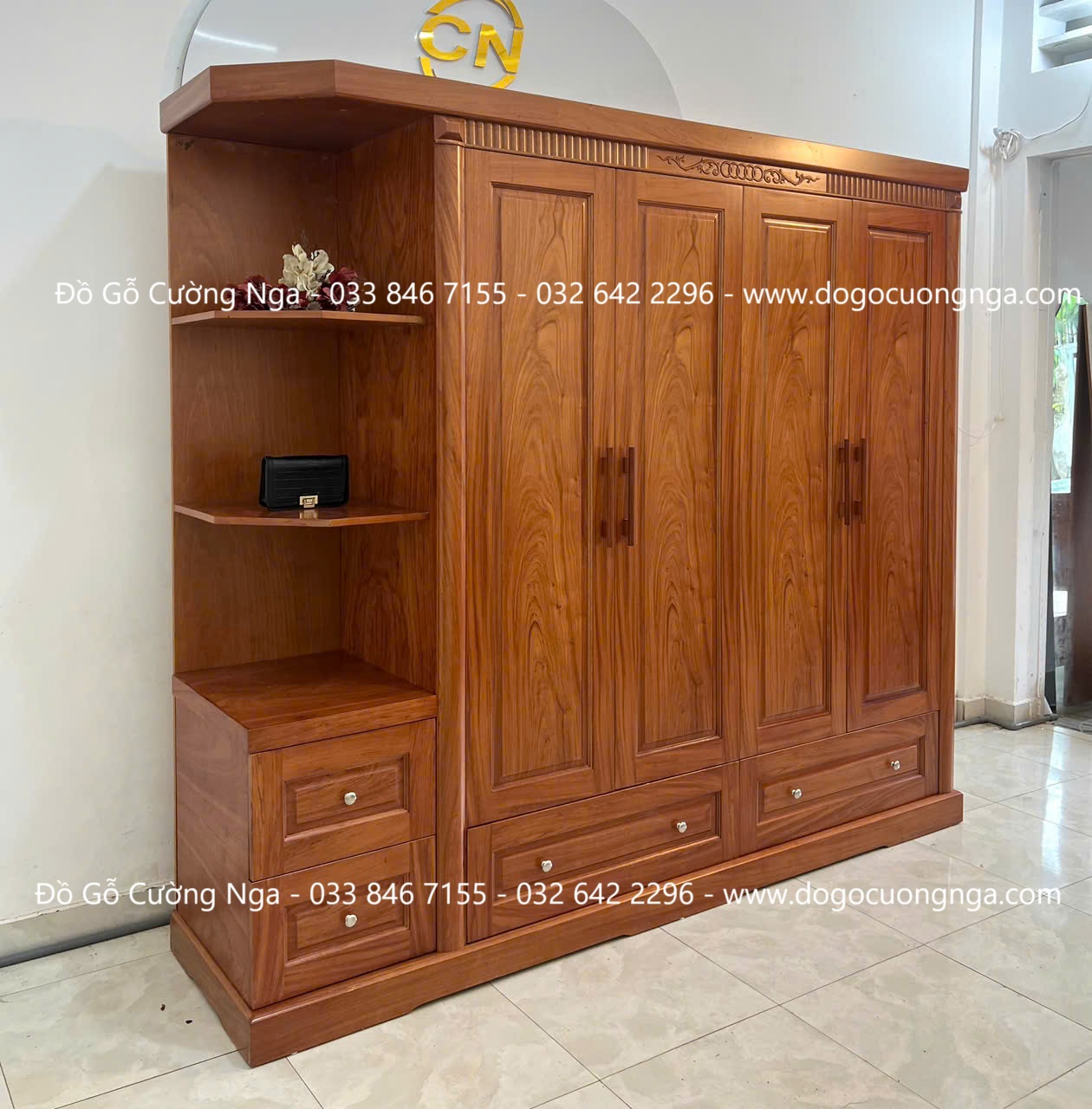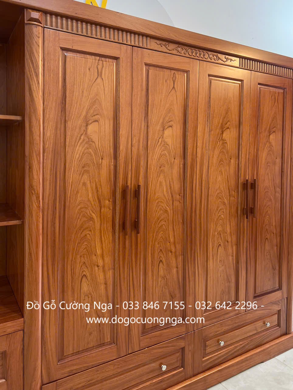 Chi tiết tủ áo gỗ hương đá 4 cánh góc trang trí