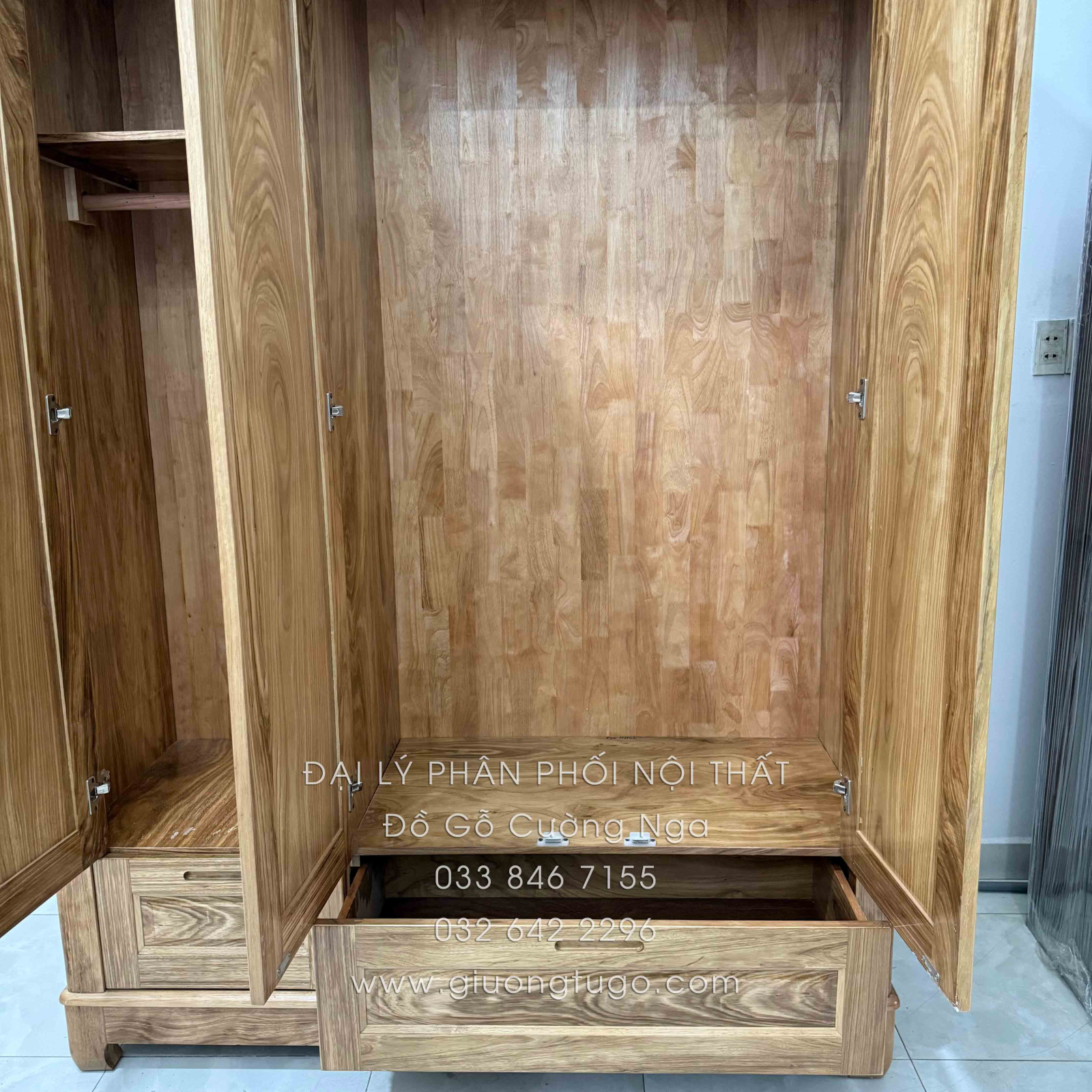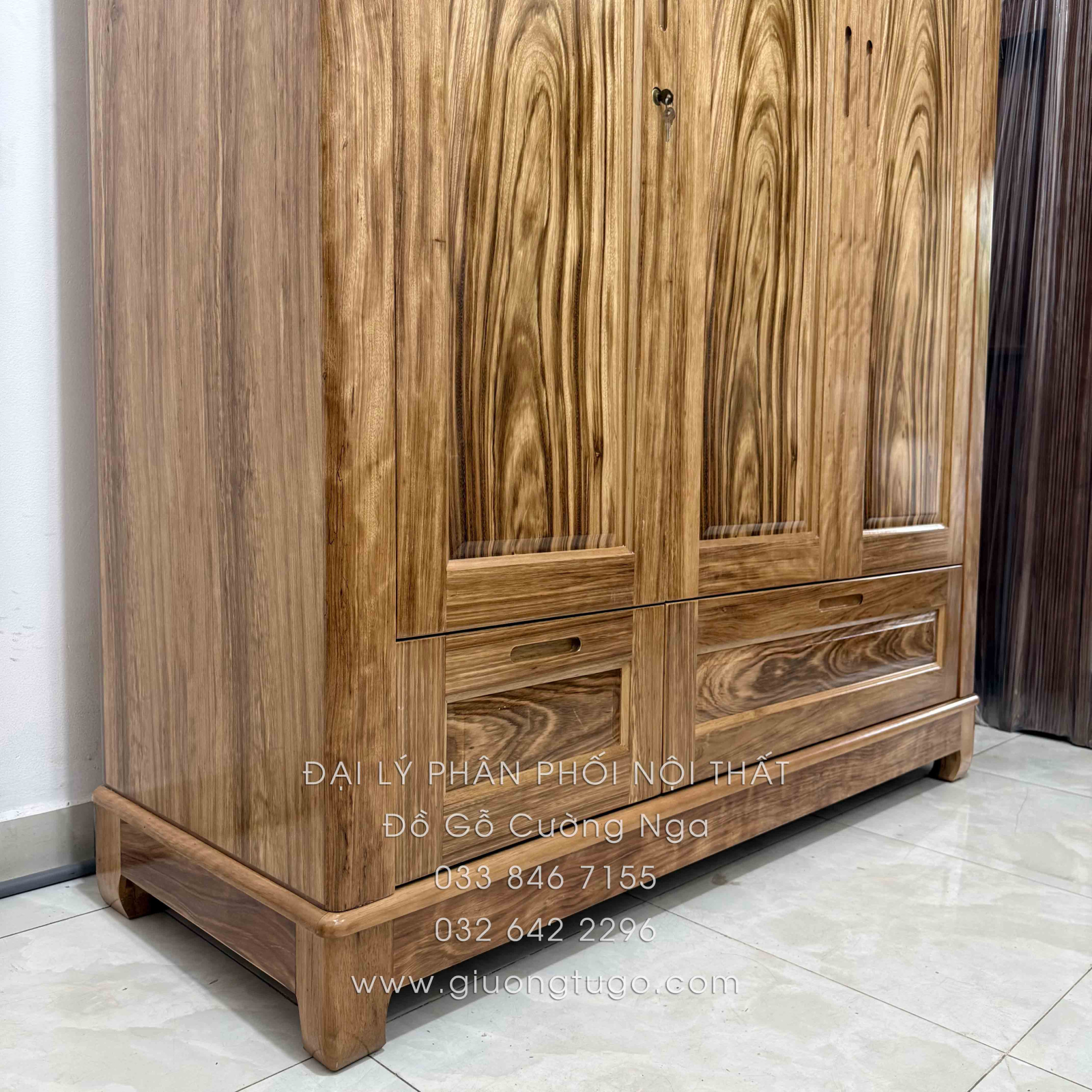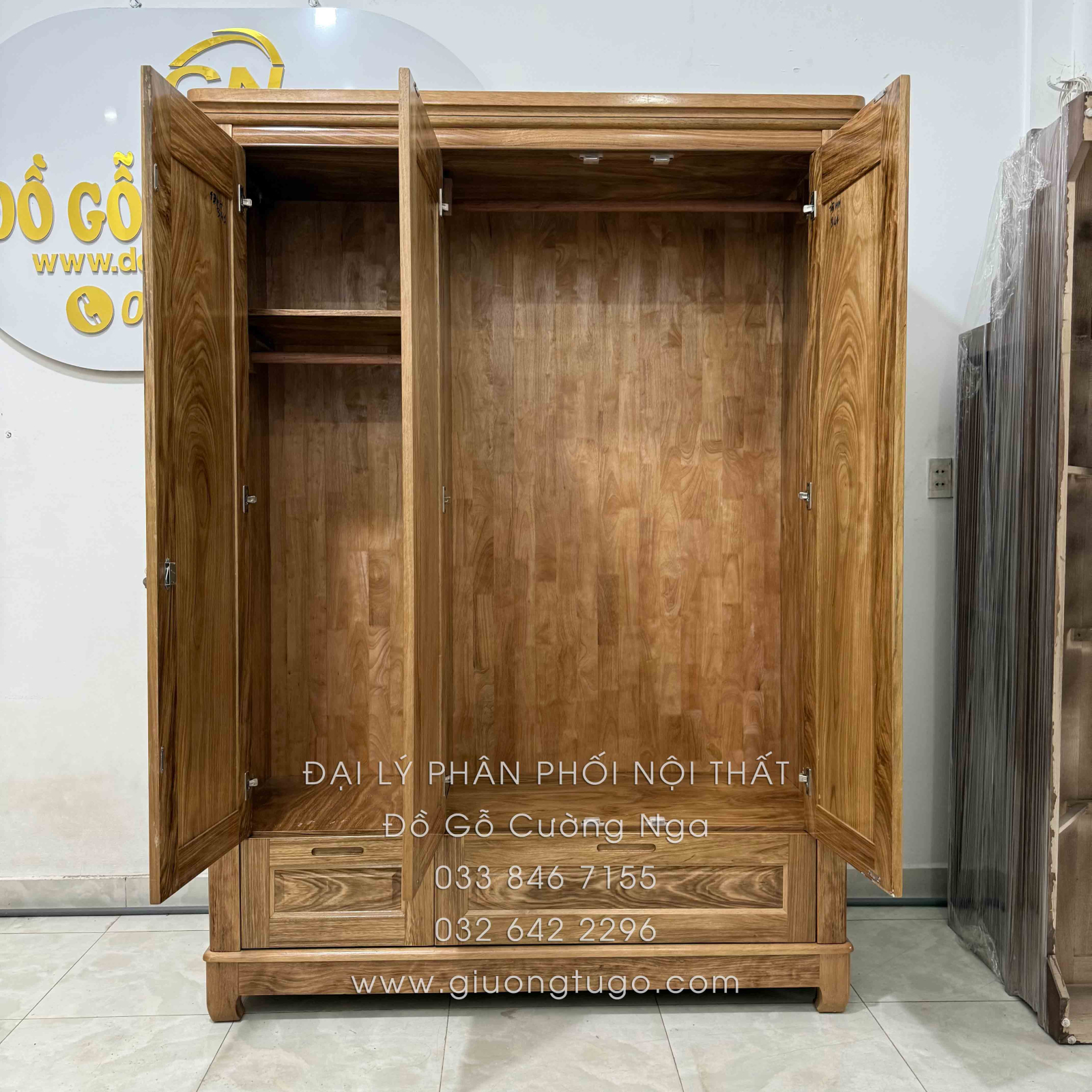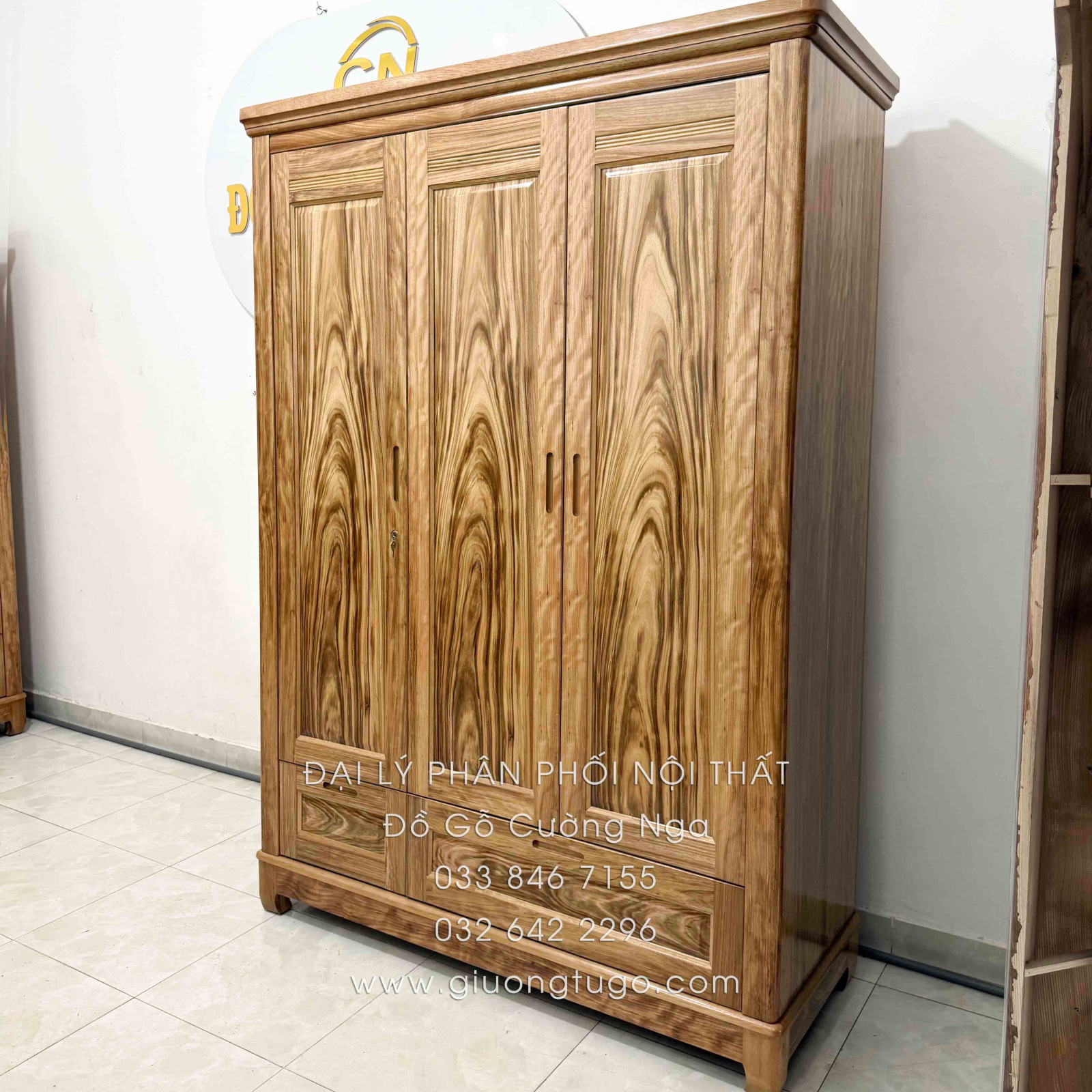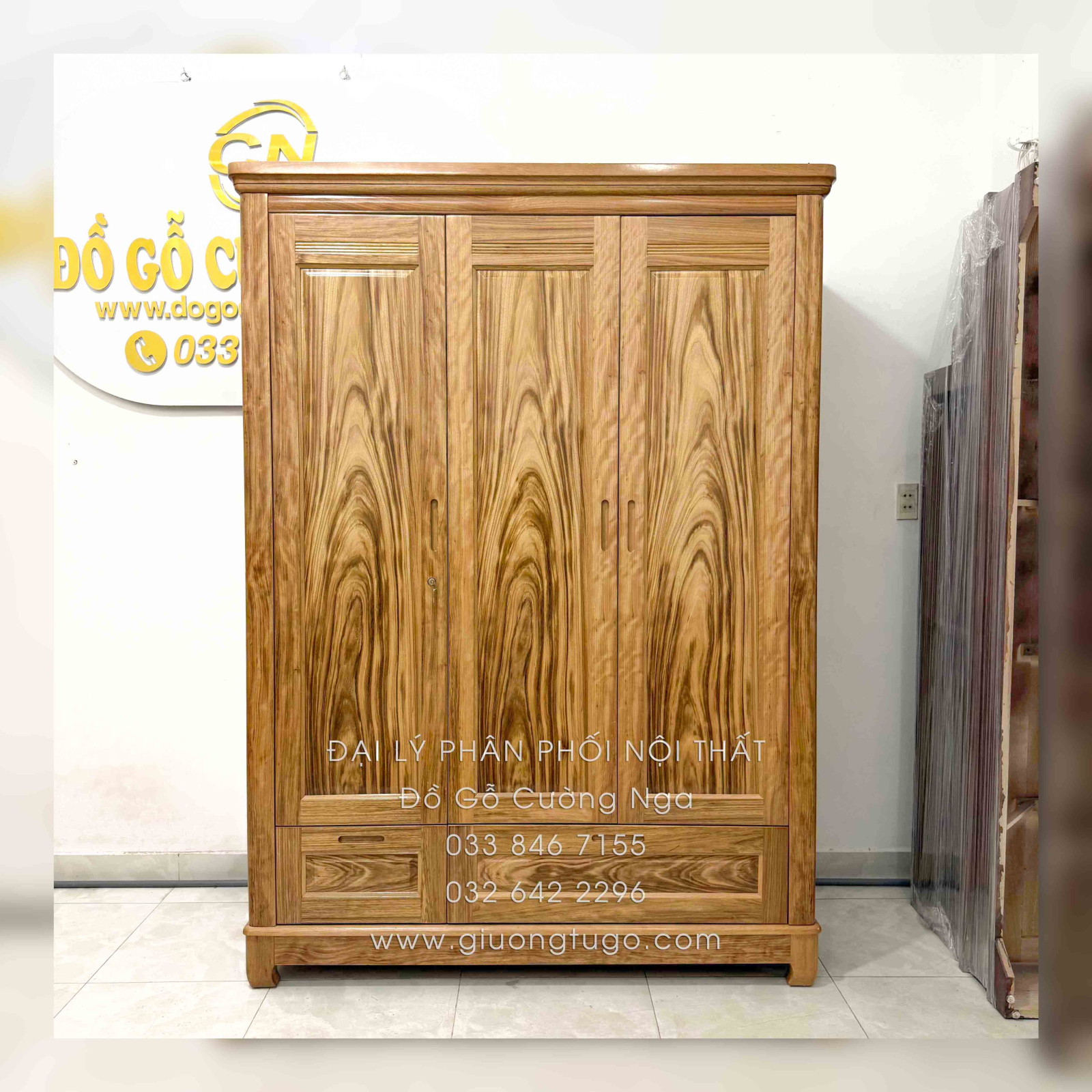 Thông tin chi tiết Tủ Quần Áo Gỗ Hương Xám 3 Cánh Mẫu Trơn 1m52