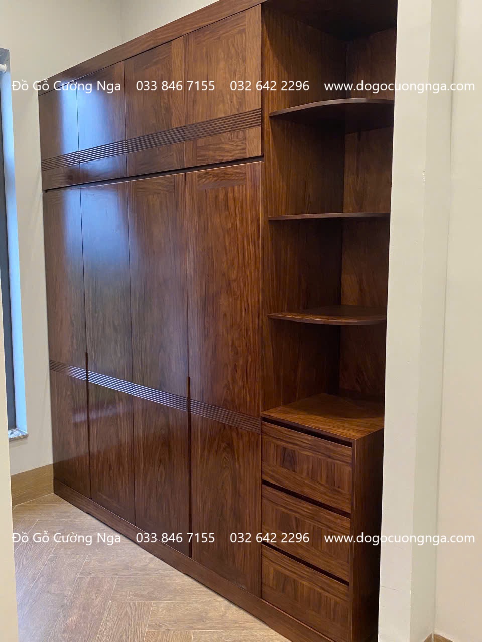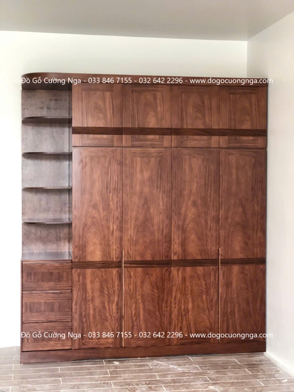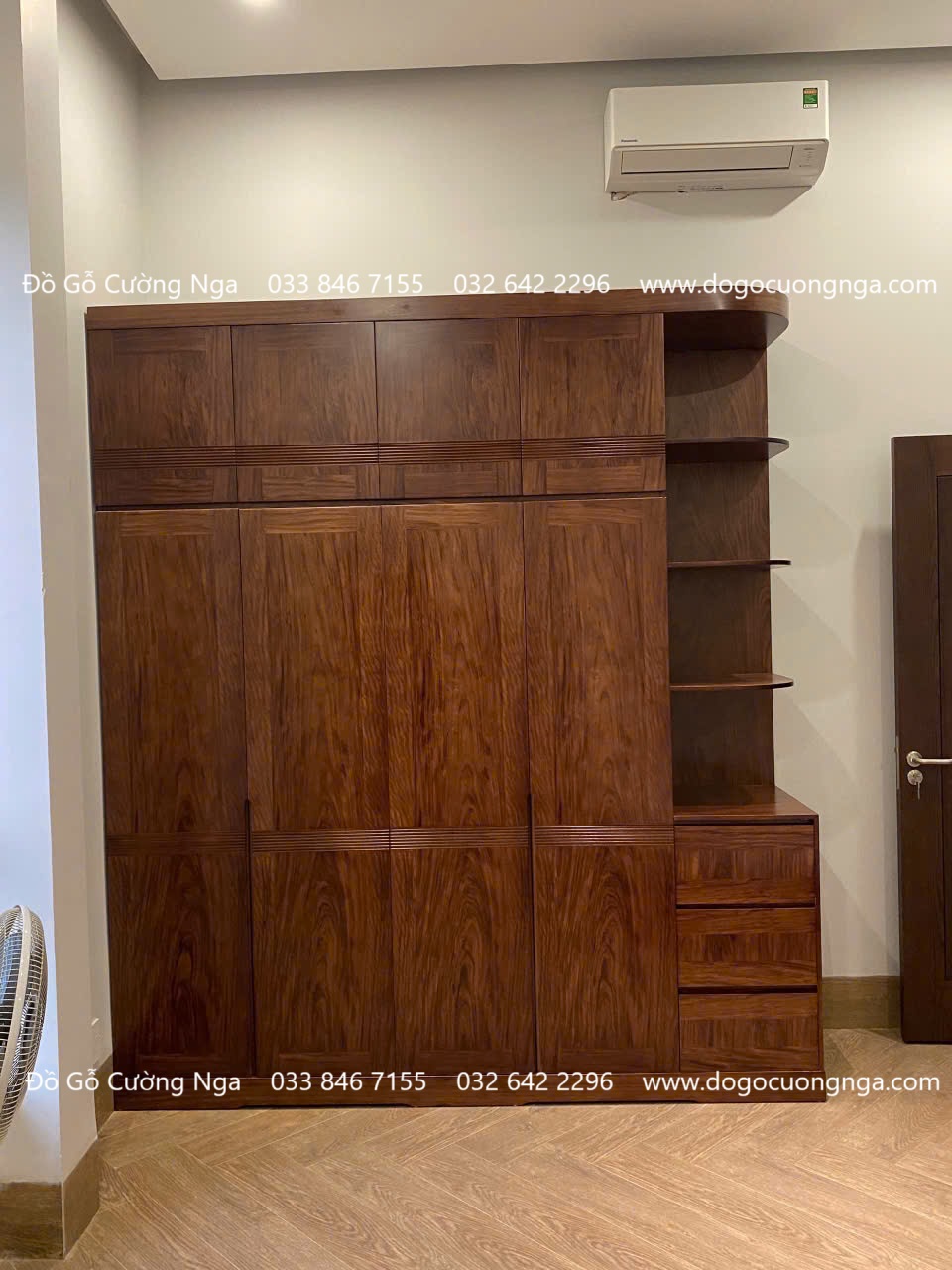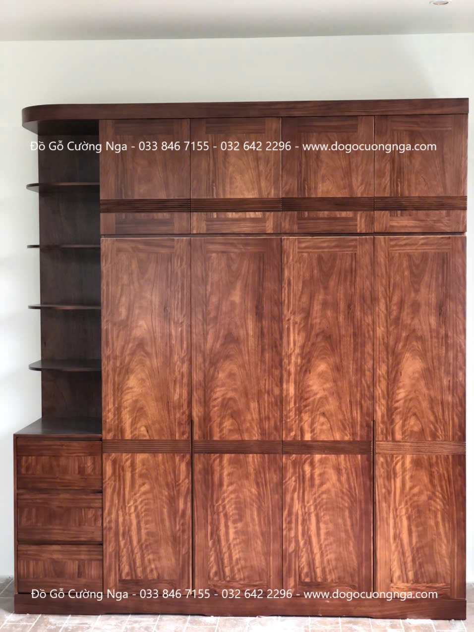 Tủ áo gỗ hương xám 4 cánh thiết kế hiện đại