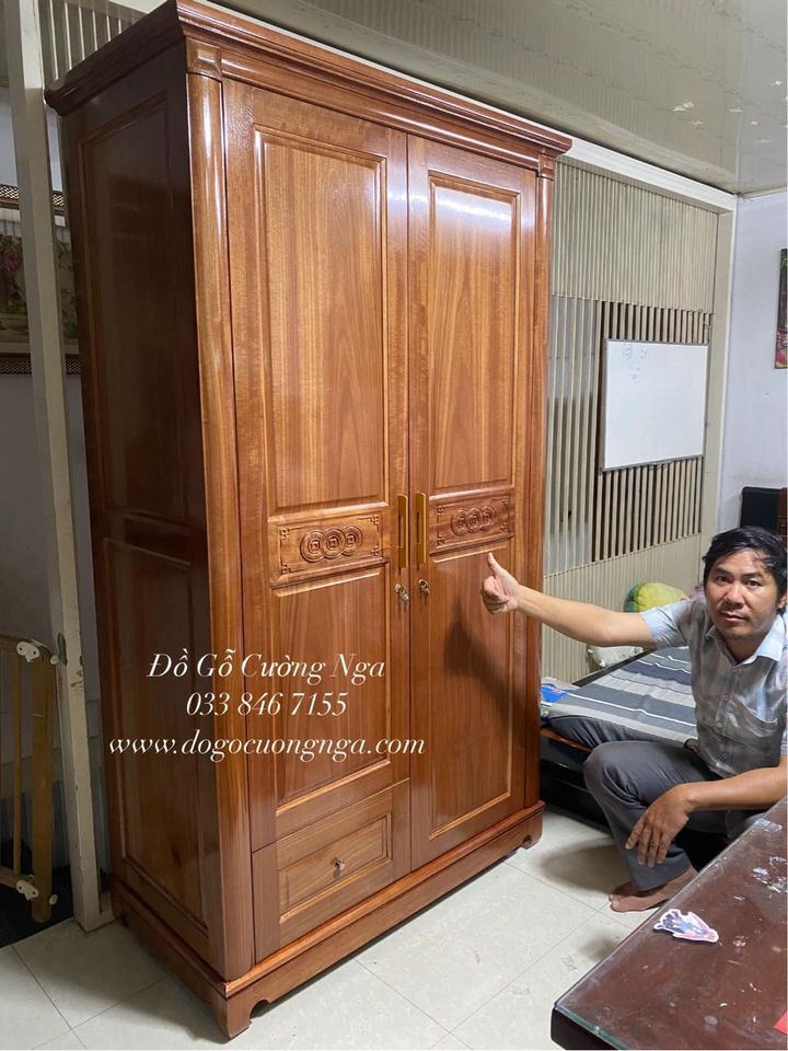 Tủ quần áo gỗ xoan đào 2 cánh 1m2