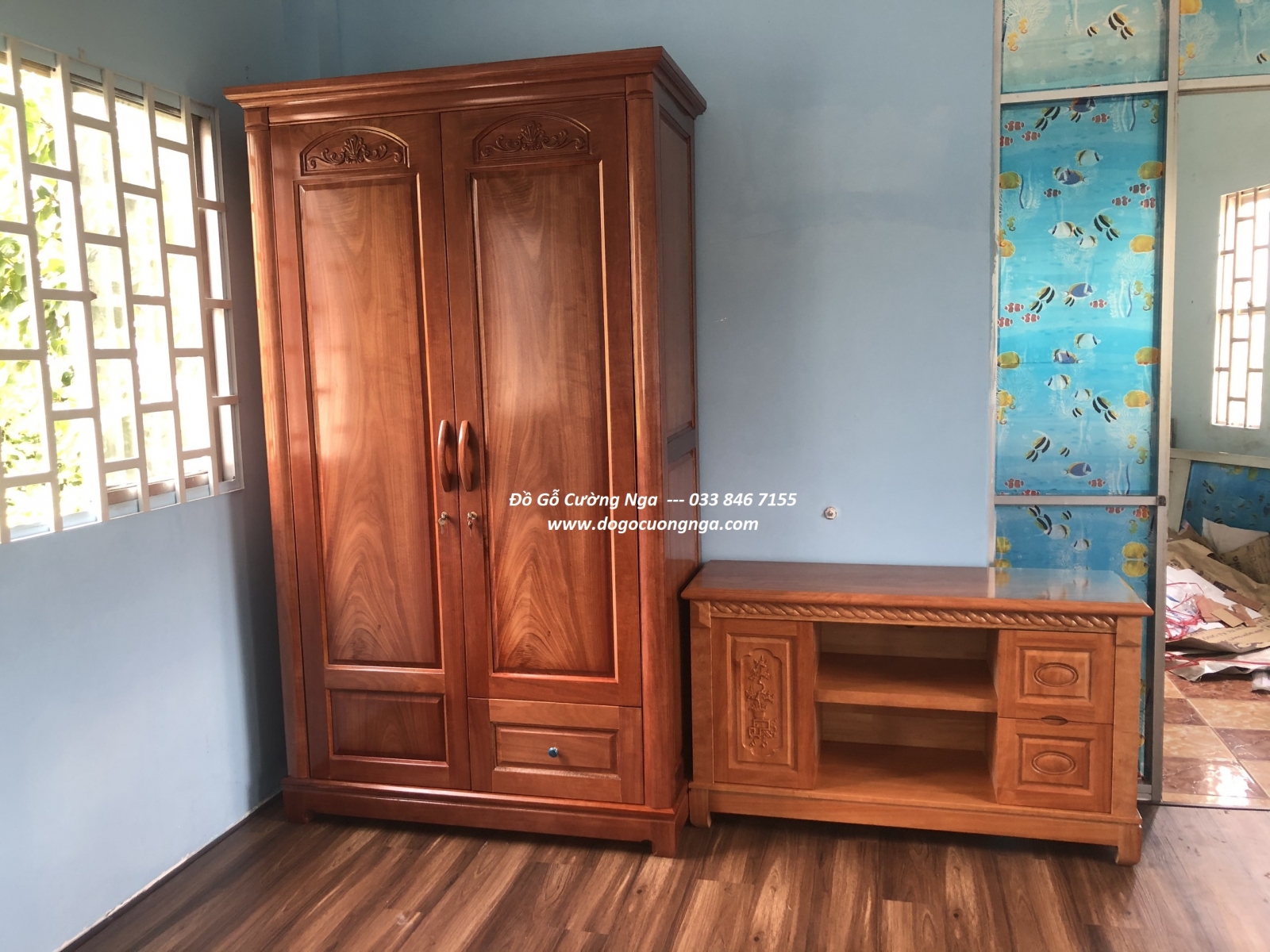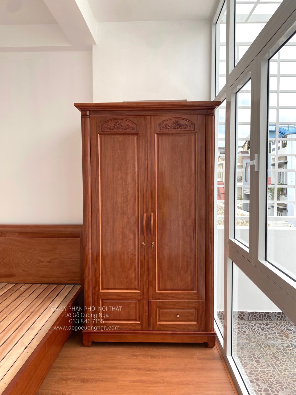 Tủ quần áo gỗ xoan đào 2 cánh 1m2