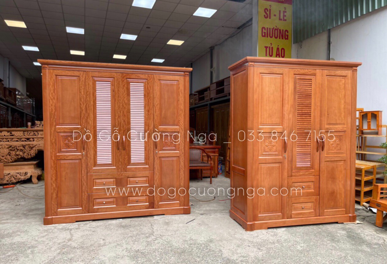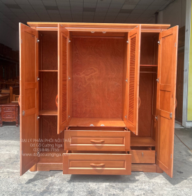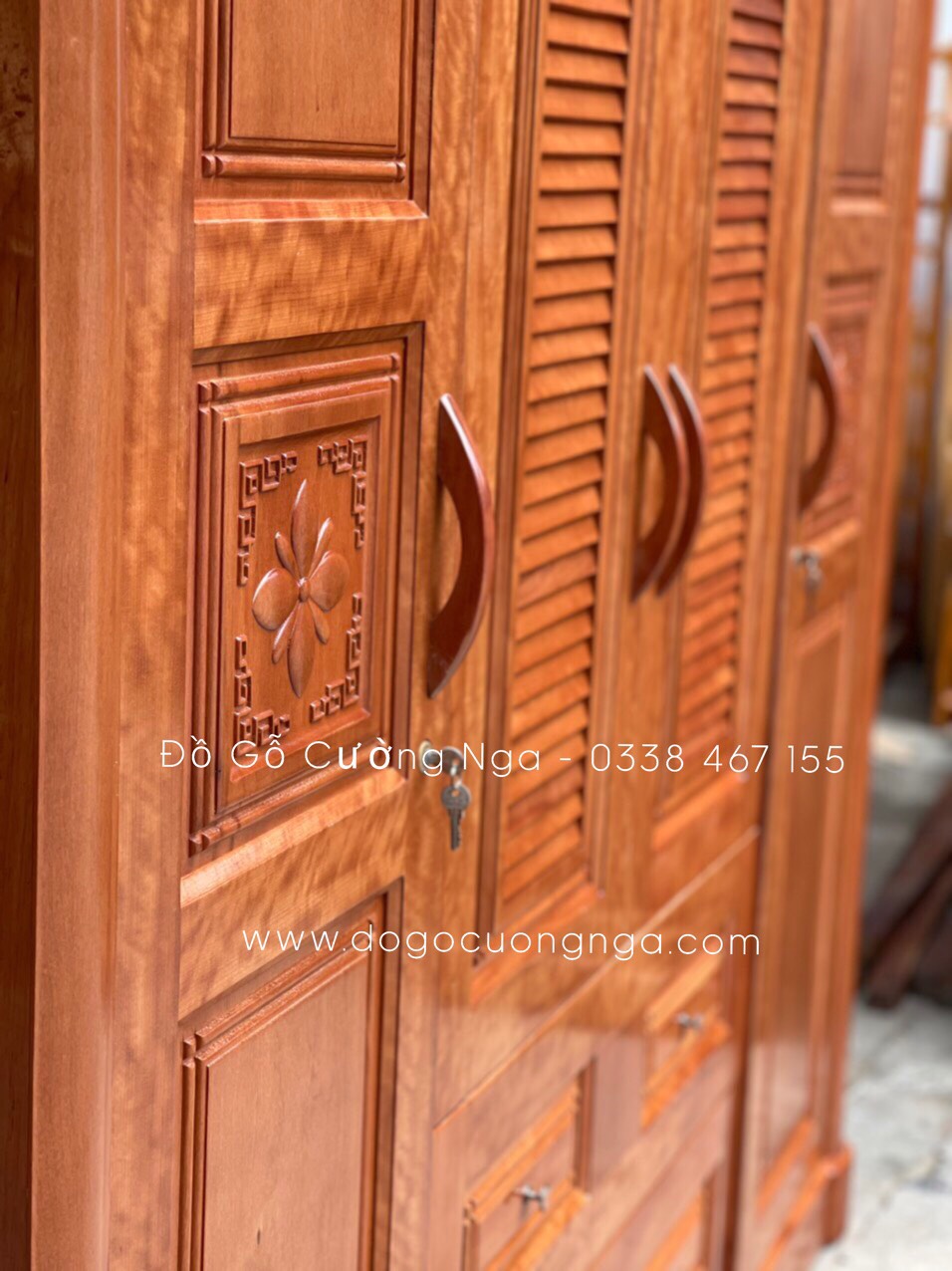 Tủ áo gỗ xoan đào 4 cánh 3 buồng hiên đại
