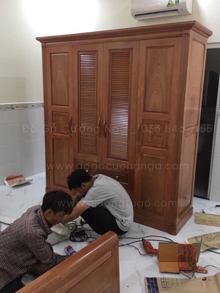 Tủ quần áo gỗ xoan đào 4 cánh hiện đại