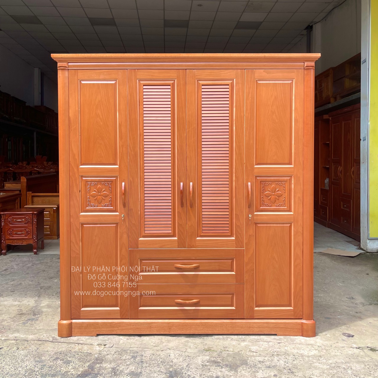 Tủ quần áo gỗ xoan đào 4 cánh 2m hiện đại