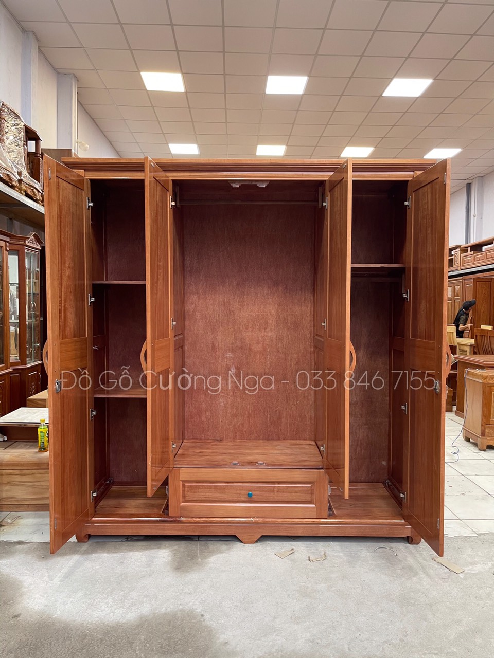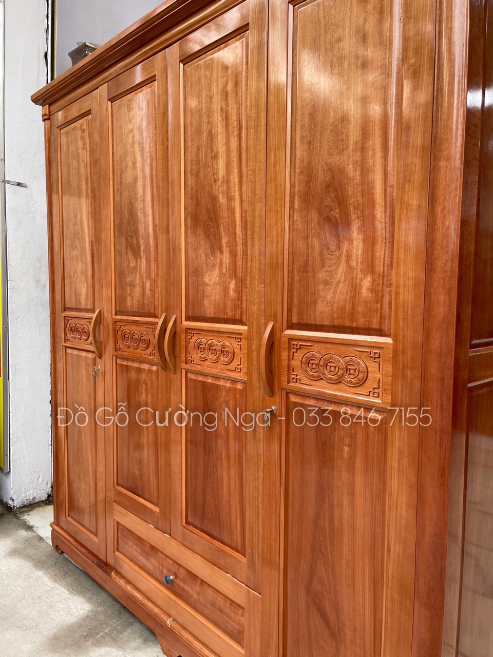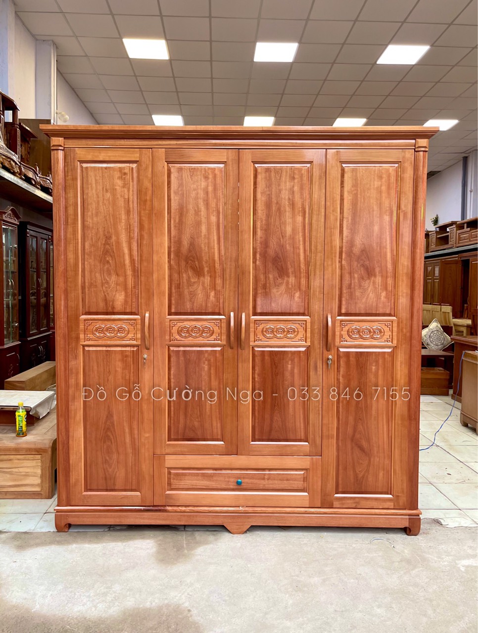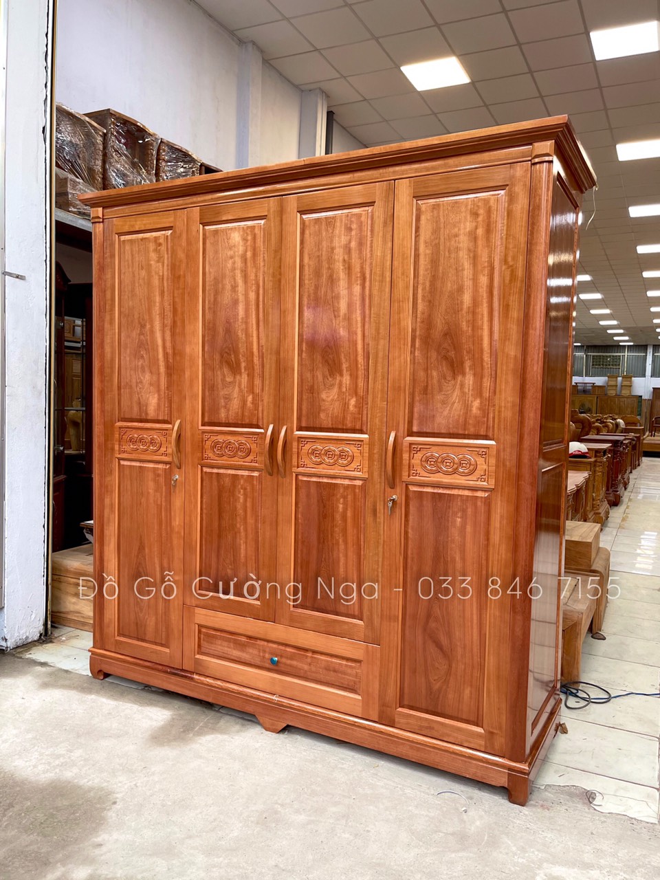 Tủ quần áo gỗ xoan đào 4 cánh giá rẻ