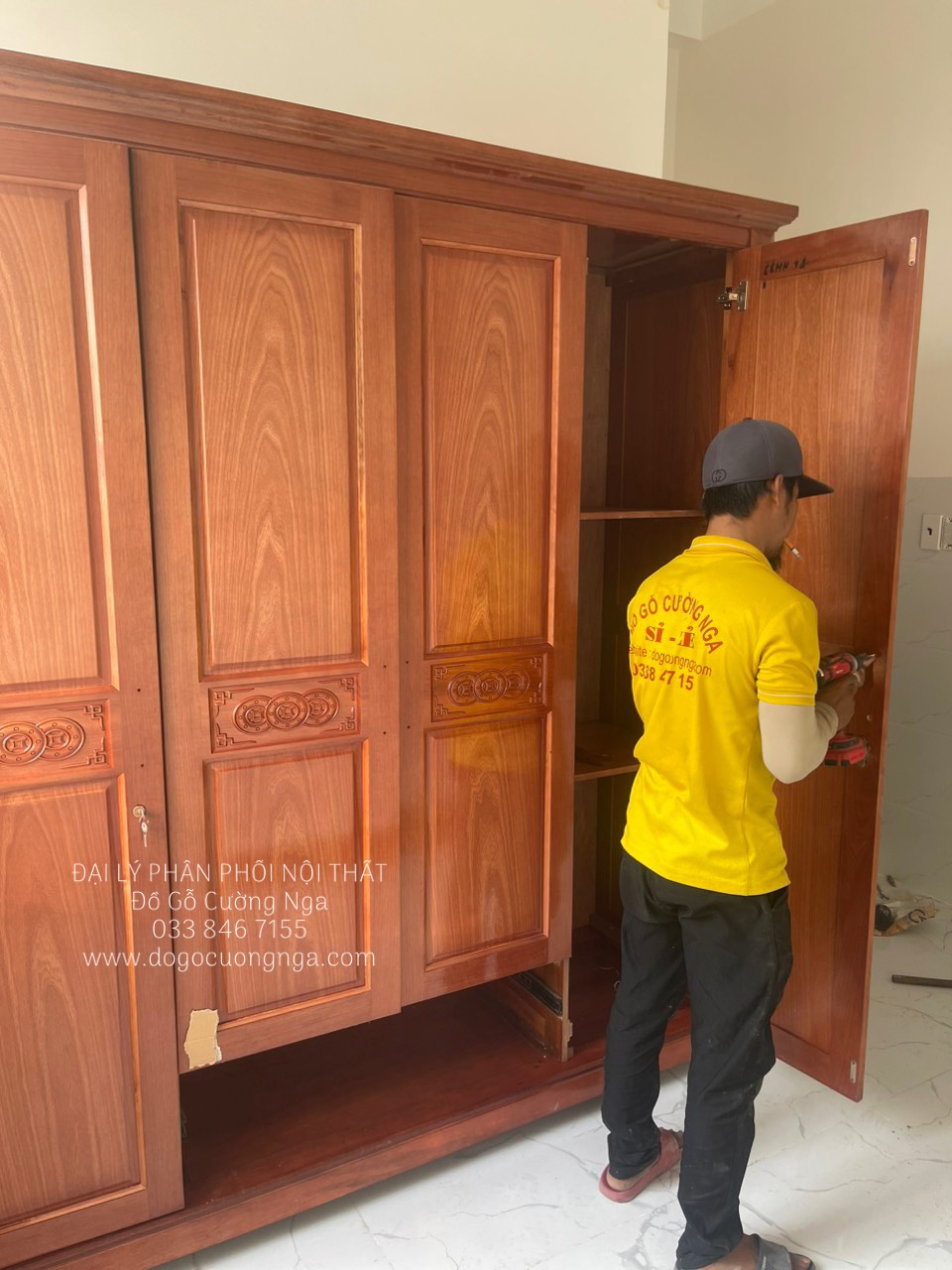 Bàn giao tủ áo gỗ xoan đào 4 cánh giao khách
